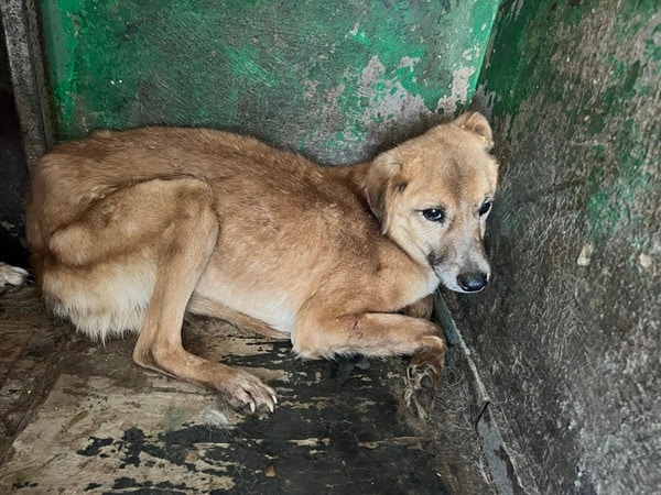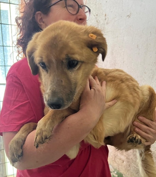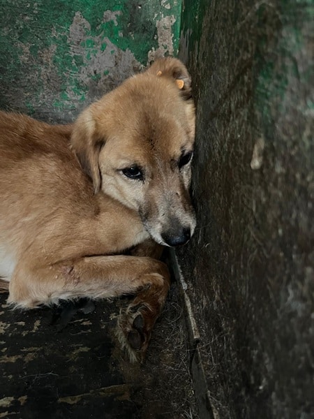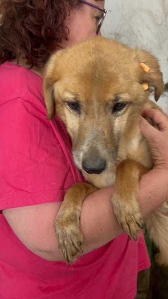 Rüde geboren ca. 2017 (oder älter) Größe ca. 40 – 45 cm zu dünn (4/2025) trübe Augen