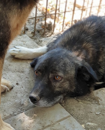 BISKUIT schien anfangs resigniert und kam auch nicht aus seiner Ecke heraus. Als wir uns ihm zuwandten, freute er sich sehr und pfötelte ganz liebevoll nach uns. Er hat uns sehr berührt, ein richtig netter und bescheidener Rüde, gut unfassbar und sehr verträglich.