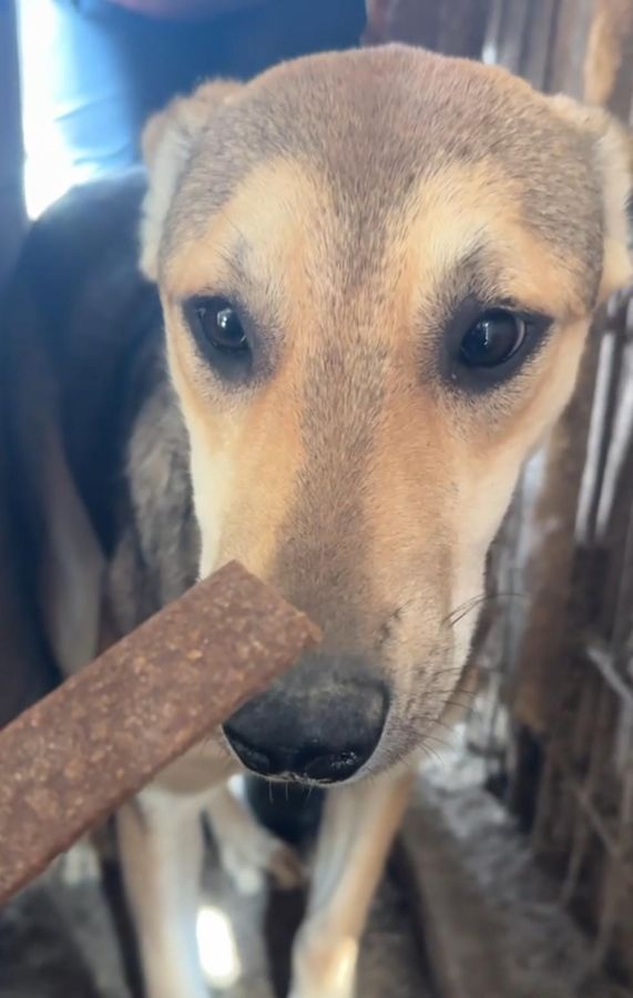 BJARNA ist eine freundliche, schüchterne Hündin. Sie nimmt Leckerlis aus der Hand und lässt sich unter leichtem Bedrängen anfassen. Nach kurzer Zeit taut sie bereits auf und kommt von selbst wieder nach vorne, um weitere Leckerlis zu nehmen. Sogar Streicheln war möglich, als das erste Eis einmal gebrochen war. Mit etwas Geduld und Einfühlungsvermögen wird sie sicherlich schnell Vertrauen fassen und ihre Unsicherheit ablegen.