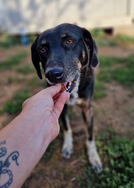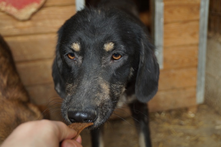 BLACKY zeigte sich sehr interessiert, kam in unsere Nähe und fand die Leckerchen toll. Ein Zweithund wäre im Zuhause ein Muss. Wer ausreichend Hundeerfahrung hat, würde das Vertrauen über Wochen gewinnen können.