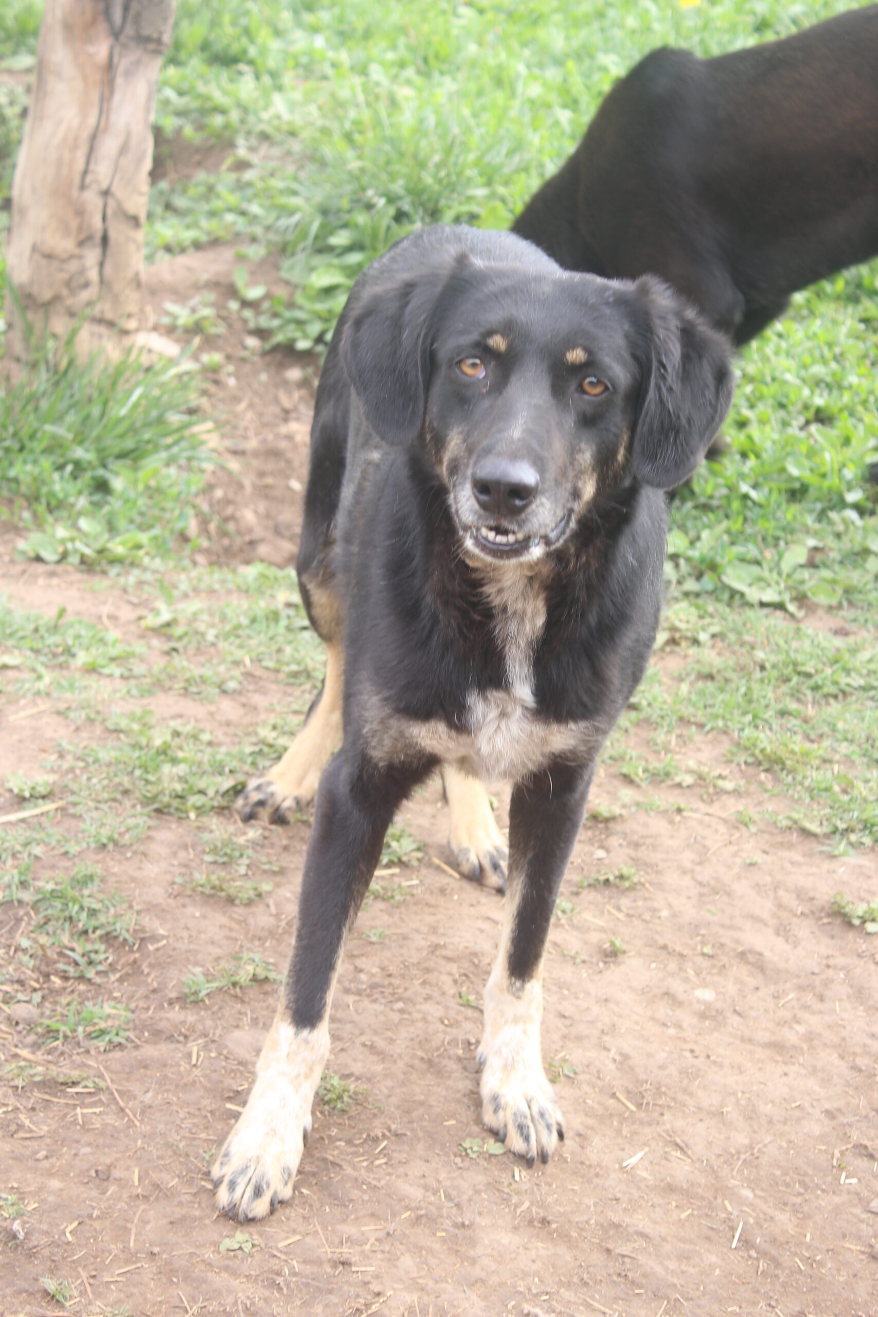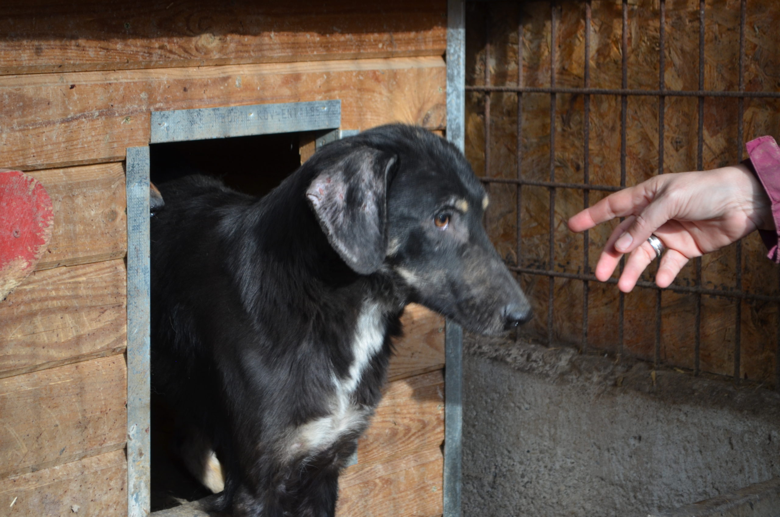 Blacky blieb während unseres Besuchs in unserer Nähe und zeigte sich sehr interessiert und aufmerksam. Auch unsere Leckerchen hat er sich vorsichtig aus der Hand abgeholt. Für weiteren Kontakt oder gar Streicheleinheiten fehlte ihm aber noch der Mut. Mit seinen Kennelkollegen zeigt er sich sehr verträglich. Im neuen Zuhause bräuchte Blacky auf jeden Fall mindestens einen weiteren Hund, der ihm Sicherheit gibt und an dem er sich besonders in den ersten Wochen orientieren kann.