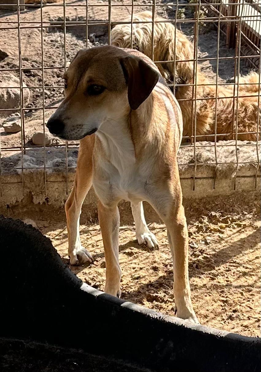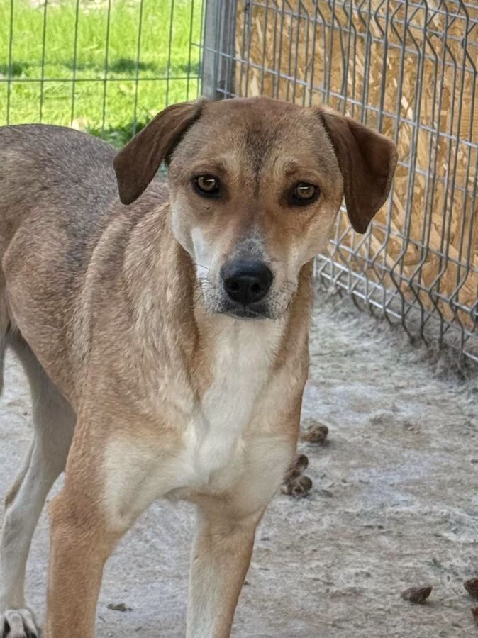 BLANCHE ist eine unsichere, schüchterne Hündin, die Zeit und Geduld braucht, um Vertrauen zu fassen. Sie ist zurückhaltend und sehr sensibel. In ihrer Hütte lässt sie sich unter ruhigen Bedingungen vorsichtig anfassen. Ein kleiner Lichtblick: Sie kommt manchmal von selbst aus der Hütte, besonders wenn man ihr keine Aufmerksamkeit aufzwingt. Dann wird sie sogar neugierig und nähert sich vorsichtig, ganz in ihrem Tempo. Direktes Zugehen verunsichert sie noch, dann weicht sie aus. Leckerlies nimmt sie vom Boden an. Mit anderen Hunden ist Blanche verträglich und orientiert sich gern an ihnen.