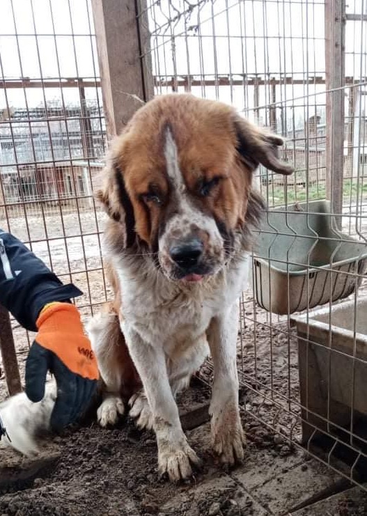 BLAVIK ist neu in Bucov (Dez. 2021) und versteht die Welt nicht mehr. In seinem kleinen Zwinger sitzt er nun, meistens mit gesenktem Kopf.