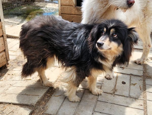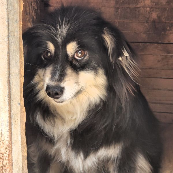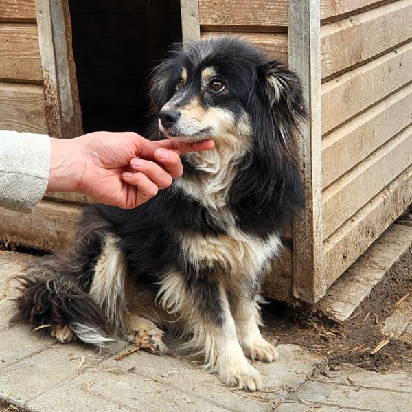 Diese hübsche Hündin begegnete uns zurückhaltend, aber mit neugierigem Blick. Sie verhielt sich in der Hütte introvertiert und nahm nach kurzer Zeit die angebotenen Leckerchen vorsichtig an und ließ sich zaghaft streicheln. Kurze Zeit später verließ sie die Hütte selbständig und nahm weitere Leckerchen entgegen.