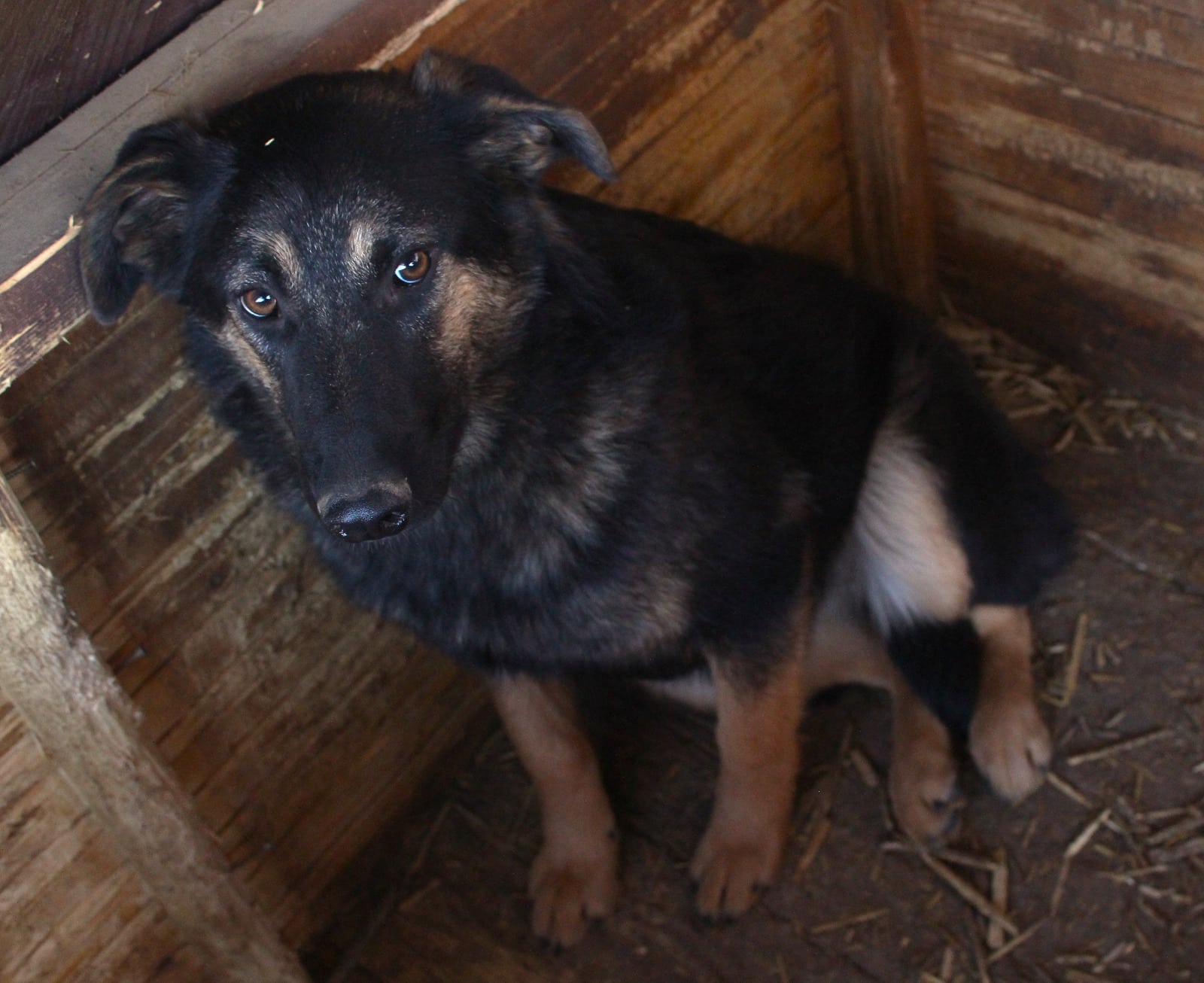 BLUME ist eine noch junge Hündin, die zwar neugierig auf uns war, aber der man ihre Unsicherheit doch sehr anmerkt. Sie nahm unsere hingeworfenen Leckerlies, aus der Hand hat sie sich nicht getraut. Wir konnten BLUME in der Hütte unter Bedrängung aber gut anfassen und sie zeigte keinerlei Abwehrverhalten. Mit anderen Hunden ist sie verträglich und ein vorhandener Ersthund würde ihr bei der Eingewöhnung sicher helfen.