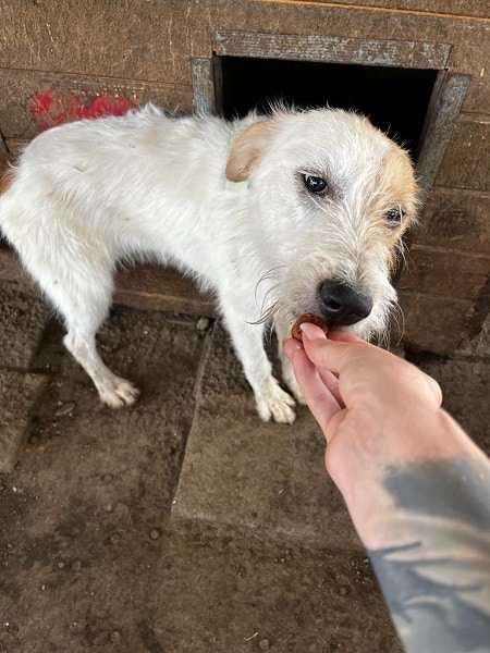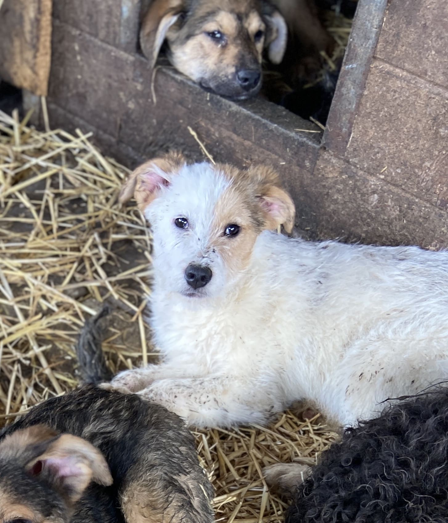 BOBBI und seine Freunde sitzen noch immer im selben winzigen Zwinger, sind aber natürlich gewachsen. Er ist ein sehr freundlicher Kerl, war immer neugierig bei uns und nahm Futter problemlos aus der Hand. Nur das Anfassen macht ihm inzwischen etwas Sorge- einfach, weil er es nicht mehr kennt. Noch lässt er sich aber anfassen, und wenn er nun bitte zeitnah da raus kommt, sollte es nicht lange dauern, bis er es wieder genießen kann.
