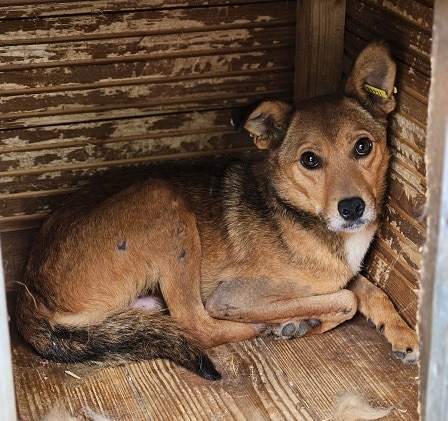 BOBO musste am rechten Vorderbein operiert werden und konnte nach seinem Klinikaufenthalt den Shelter wechseln. Nun ist er im SOH und seine Beinverletzung ist gut verheilt. BOBO beobachtete uns neugierig, ist aber weiterhin unsicher und wich uns aus. Unter Bedrängung konnten wir ihn anfassen. Genießen konnte er die Streicheleinheiten aber nicht und zeigte uns das auch mit Abschnappen. Ein netter Ersthund würde ihm die Eingewöhnungszeit sicher erleichtern.