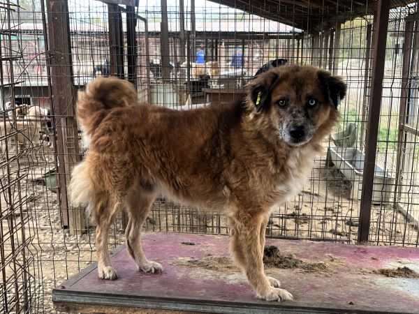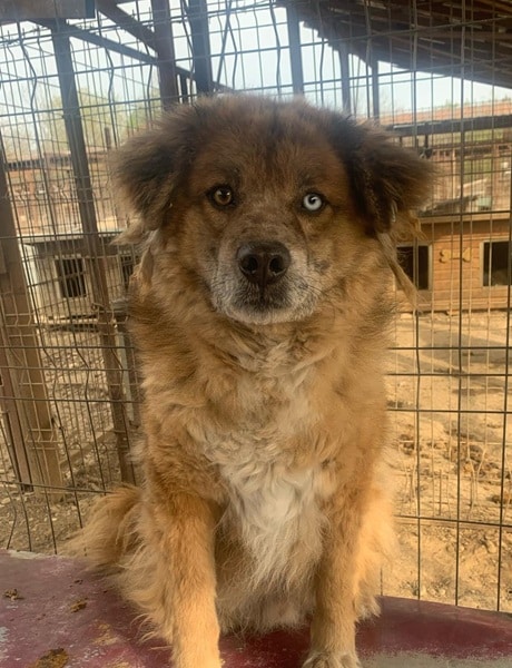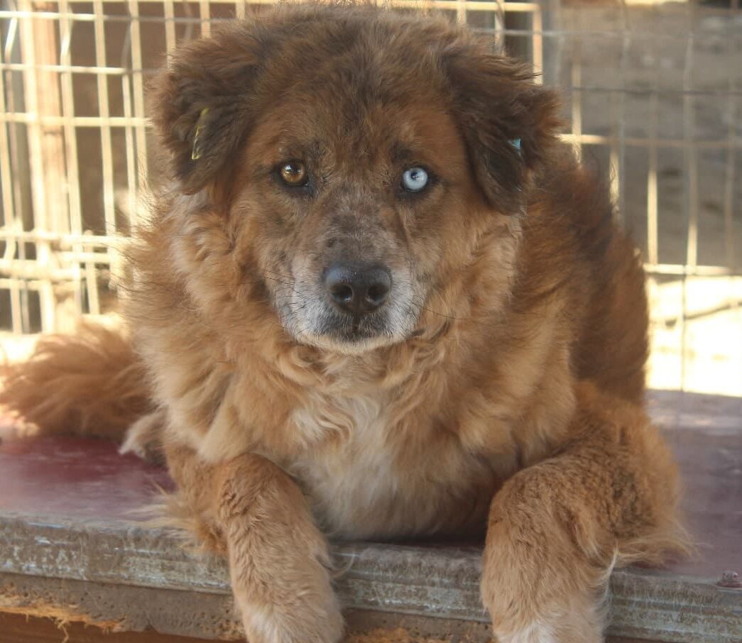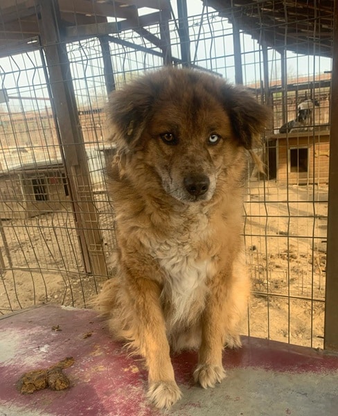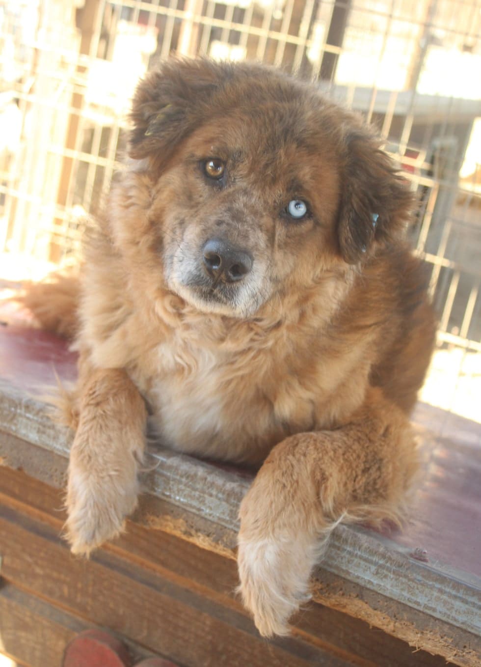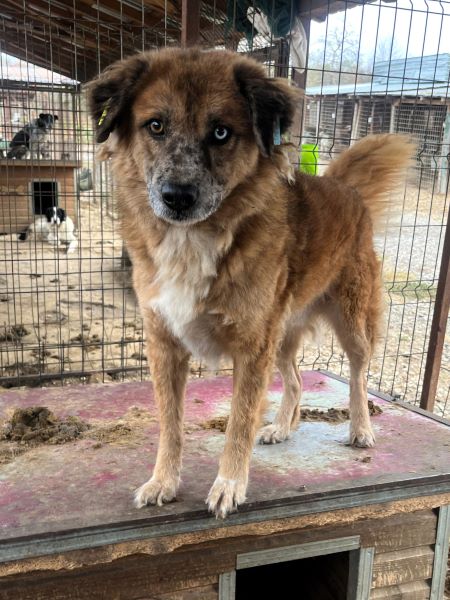Der hübsche BODO mit den auffallenden Augen sitzt bereits seit ca. März 2023 in Bucov. Bei unserem Besuch in seinem vollen kleinen Kennel hielt er sich nur auf dem Hüttendach auf. Er zeigte sich neugierig und interessiert, ließ sich aber noch nicht anfassen. Nach einiger Zeit nahm er Leckerchen vorsichtig aus der Hand. Leider sprangen auch immer wieder andere Hunde dazwischen, sodass weder Raum noch Zeit war, mehr zu erreichen.