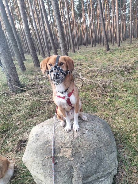 Bollek hat bei uns schon tolle Fortschritte im Training gemacht. Er vertraut mehr und mehr, überwindet immer öfter seine Ängste und kann es zunehmend besser ertragen, dass ihm auch mal etwas nicht gefällt. Mit viel Einfühlungsvermögen gehen schon einige Dinge, die zu Anfang unserer Arbeit mit dem Schönling ein Ding der Unmöglichkeit gewesen wären. Inzwischen lässt Bollek sich gut mit Leckerlies trainieren und wird zunehmend duldsamer. Neben viel weiterem Training wird Bollek vor allem eins benötigen: Zeit! Irgendwann wird er soweit sein, dass er in sein eigenes zu Hause ziehen kann; derzeit wäre Bollek nur an Menschen vermittelbar, die in ganz besonderem Maße kompetent sind und ihm mit einem ruhigen Umfeld auch die entsprechenden Gegebenheiten bieten können.