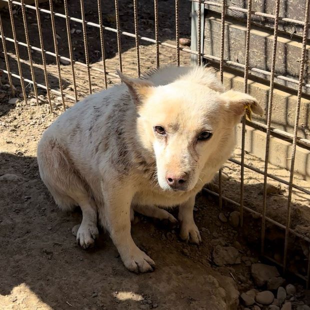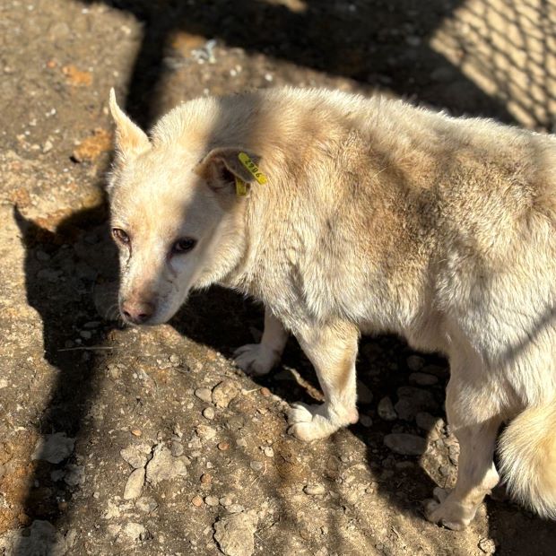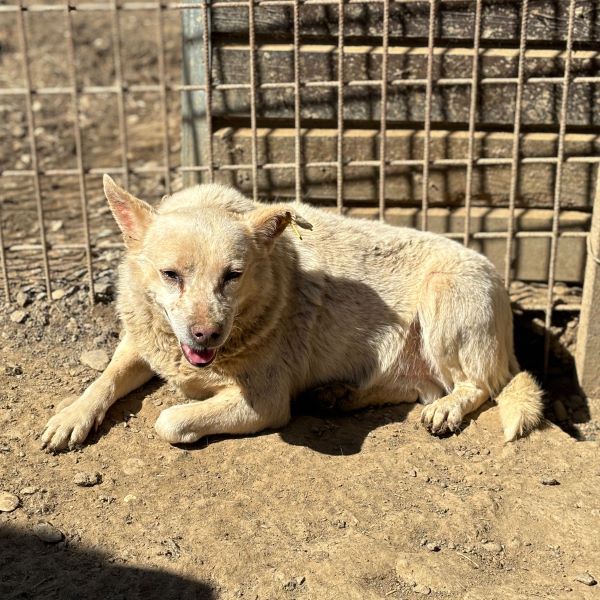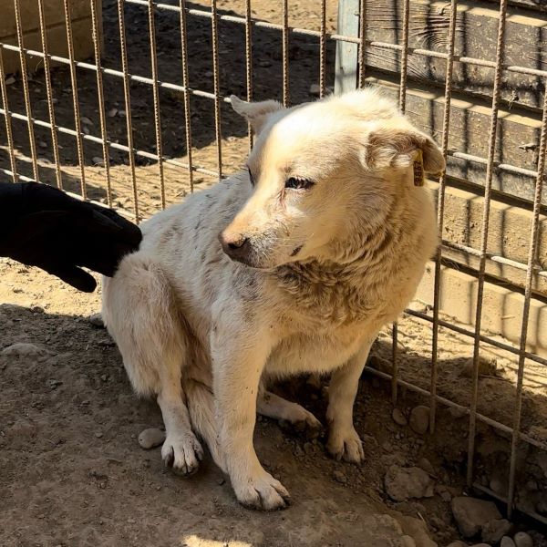 BONECO lebt bereits seit einem Jahr im Shelter und ist der kleinste und anscheinend auch der älteste Hund in einem sehr trubeligen Kennel. Er wirkte anfangs gestresst davon, dass wir nun auch noch zu Besuch kamen. Mit den anderen Hunden lief er hin und her, einmal um uns auszuweichen, zum anderen um doch noch Leckerlies zu erhaschen. Später hielt er sich im Schutz einer Gruppe immer in unserer Nähe auf, beobachtete uns und war sehr am mitgebrachten Futter interessiert. Für einen kurzen Augenblick gelang es uns, BONECO zu streicheln. Dazu mussten wir ihn nicht stark bedrängen, denn er blieb einfach kurz ruhig sitzen. Ganz wohl war ihm nicht bei der Sache, zu ungewohnt ist ihm diese intensive Nähe und so hielt er es nur kurz aus und suchte dann wieder Abstand. Mit mehr Zeit und Ruhe hätte sich der niedliche BONECO sicher noch mehr entspannen können, aber die Aufregung in seinem Kennel war zu groß und unsere Zeit leider zu knapp. Der höfliche BONECO blieb uns und den Hunden gegenüber auch im Gedrängel und Geschubse durchgehend geduldig und freundlich und wirkt insgesamt sehr verträglich.