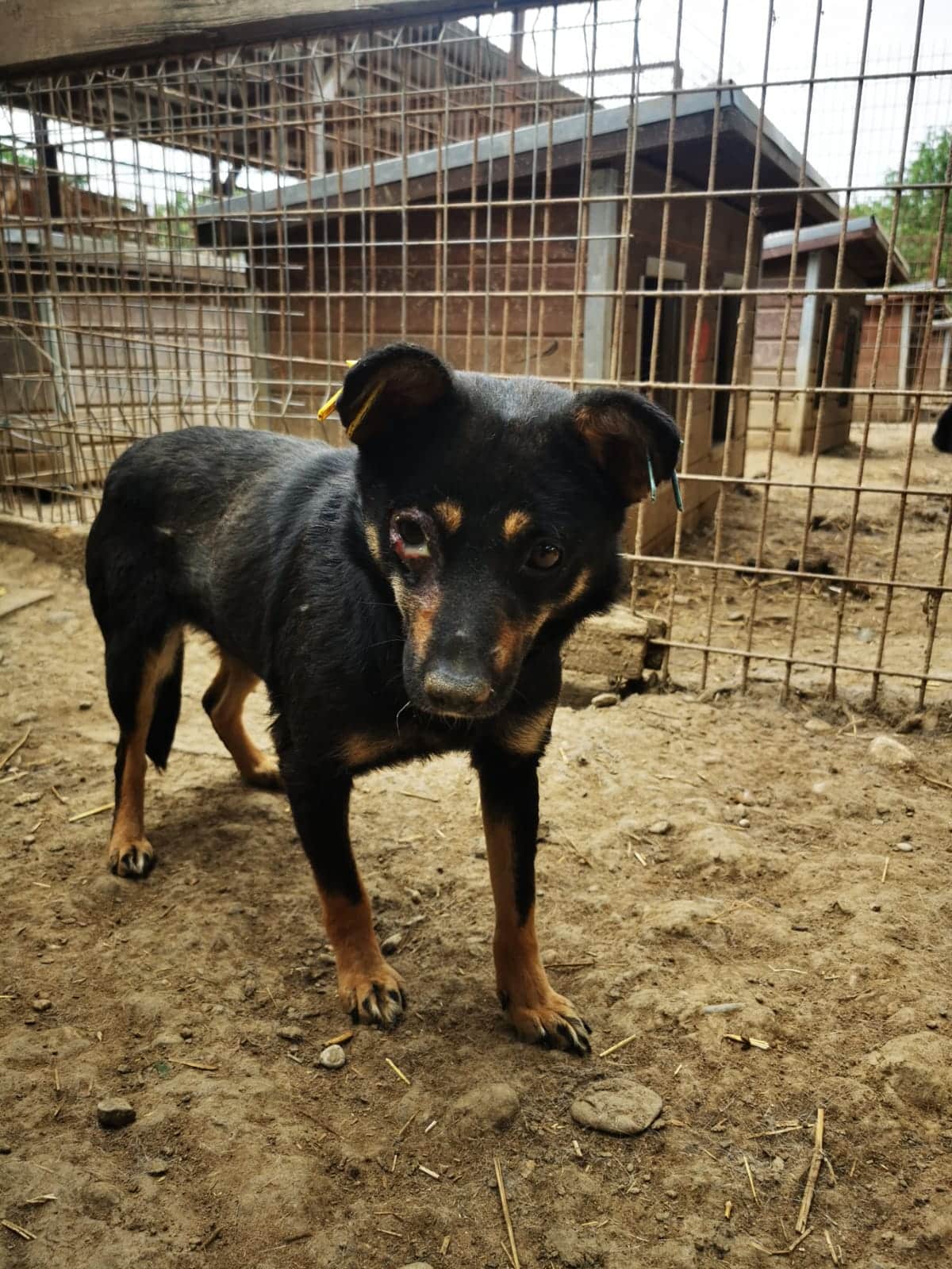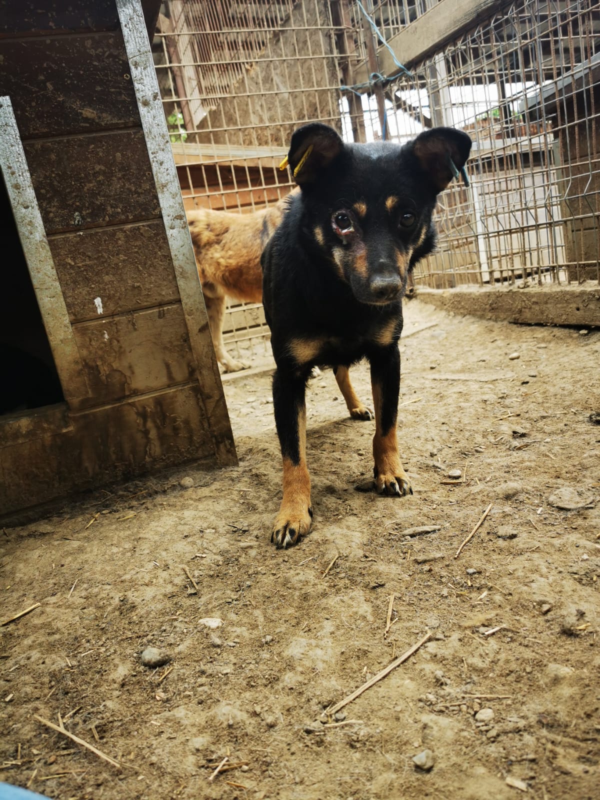 Diese niedliche kleine Hündin wirkte sehr interessiert und neugierig. Leider hat sie bisher wohl nicht ausreichend Erfahrung mit Menschen gemacht, um noch einen Schritt weiter auf uns zuzugehen. Das würde sich in einem ruhigen Zuhause mit genügen Zeit bestimmt schnell legen. Aktuell leidet die Kleine leider an einer Augen-Entzündung und sollte daher schnell ausreisen.