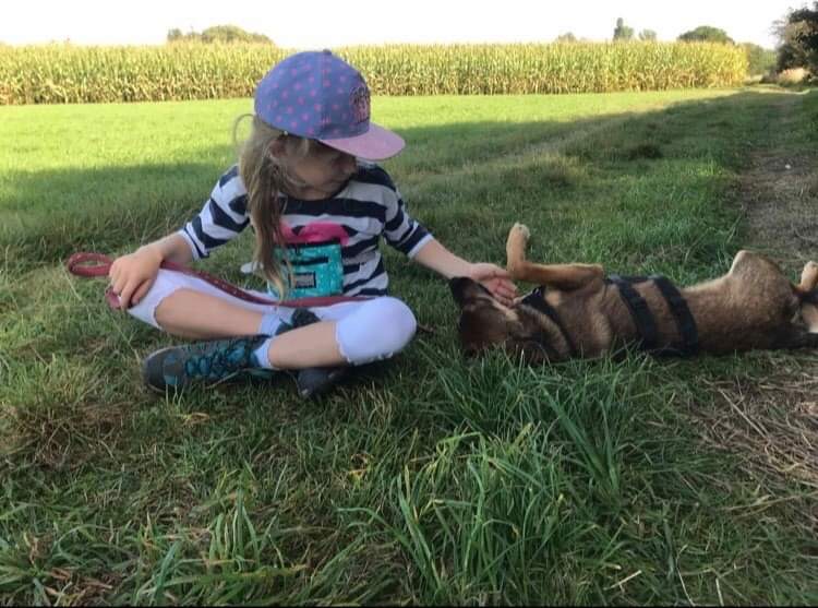 Bonita ist nun seit Mitte September 2021 in Deutschland und hat schon so viel gelernt! Schnell konnte sie Treppen steigen, freundete sich gleich mit den Kindern an und erkundete das ganze Haus. Sie geht gerne Gassi, auch längere Runden bereiten ihr große Freude. Sie läuft schon gut an der Leine und auch die Schleppleine hat sie schon kennengelernt. Mit der Stubenreinheit klappt es ziemlich gut. Sie ist junghundetypisch verspielt und kann hüpfen wie ein Flummi. Sie liebt es, wenn man sich mit ihr beschäftigt, kann aber auch für längere Zeit ruhig liegen und beobachten (oder schlafen).