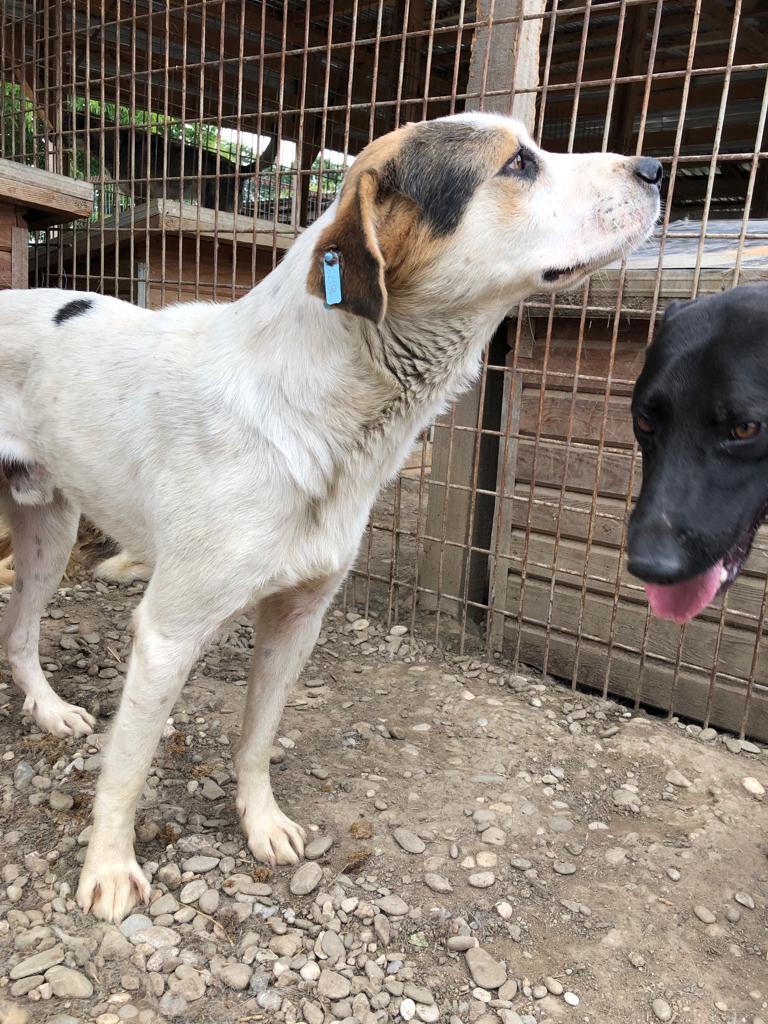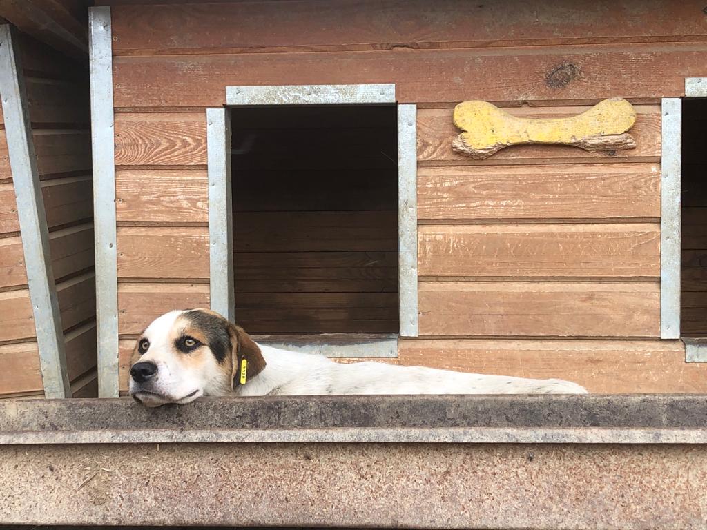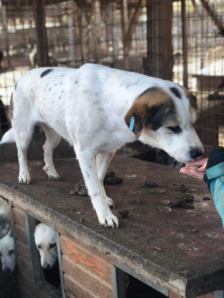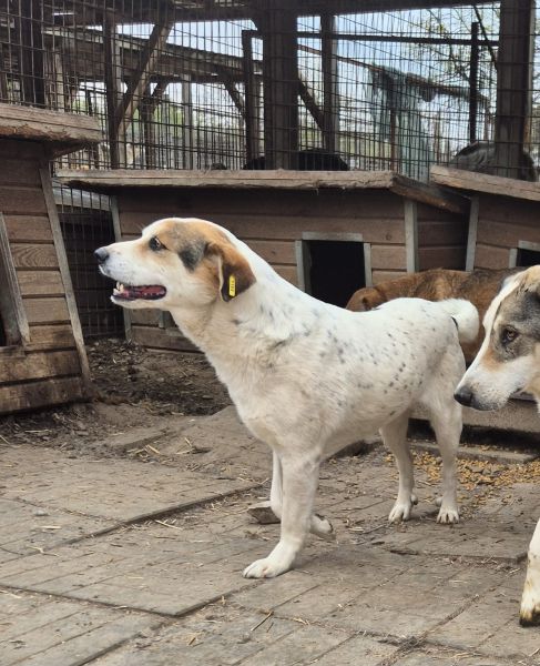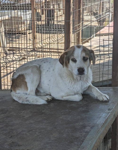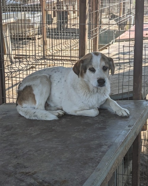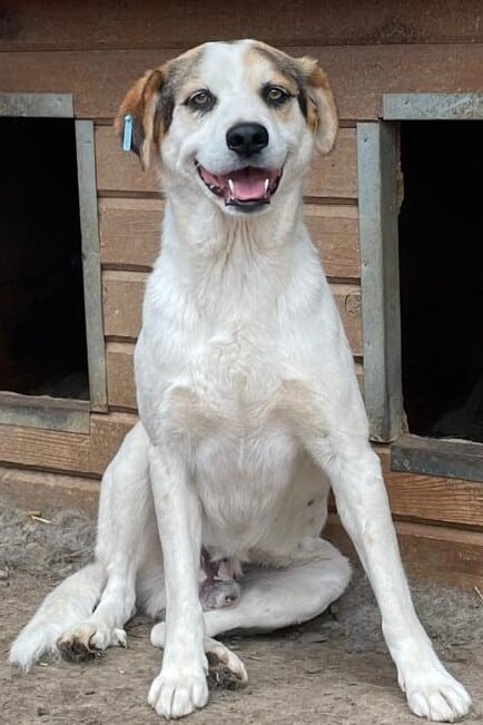 Als wir BONJOVI´S Kennel betraten, beobachtete er uns neugierig. Als wir uns ihm zuwandten, ging er in seine Hütte. Dort nahm er freundlich Leckerlis aus der Hand. In seiner Hundegruppe herrscht ein harmonisches Miteinander, doch sobald sich die Hunde außerhalb der Hütte aufhielten, wurden sie von den Hunden in den drei umliegenden Kenneln lautstark verbellt. Diese ständige Geräuschkulisse und Anspannung machen die Situation für BONJOVI sichtbar stressig. Trotzdem hielt er sich in unserer Nähe auf, blieb ruhig, aber wirkte stets verunsichert, sobald es laut wurde – er schaute sich oft suchend um. Wir sind überzeugt, dass BONJOVI in einer ruhigeren Umgebung mehr Vertrauen fassen, sich streicheln lassen und mutiger auf Menschen zugehen würde. Er bringt die Neugier bereits mit – nun fehlt ihm nur noch ein sicherer Ort, um sich wirklich öffnen zu können.