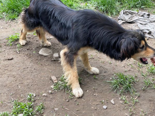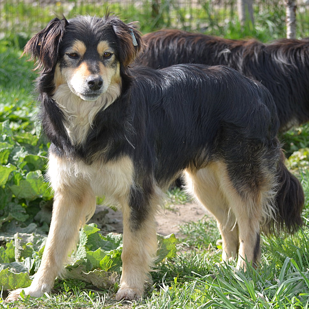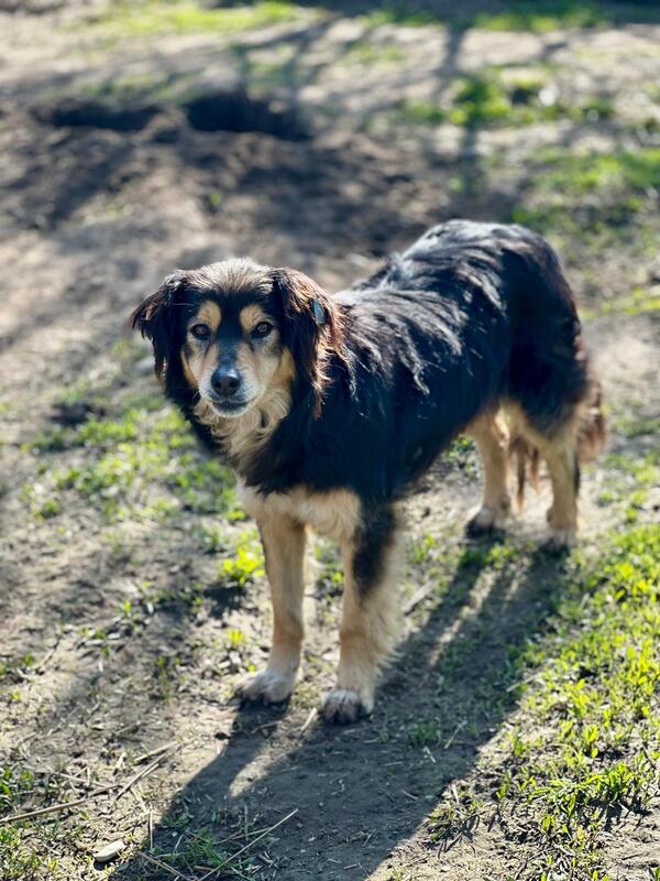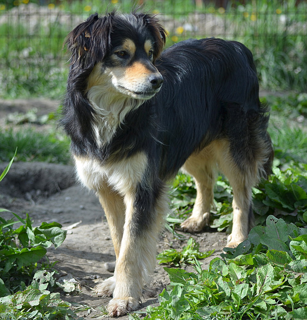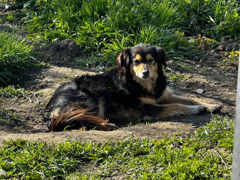 Bonni blieb während unseres Besuchs auf sicheren Abstand. Meist stand oder lang sie einige Meter entfernt. Als wir uns ihr zuwandten, entfernte sie sich nicht weiter, sondern nahm Leckerchen aus den Fingern. Sie lebt in einer festen Hundegruppe im Auslauf. Sie sollte mindestens Zweithund werden.