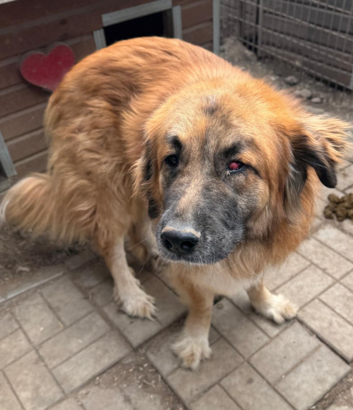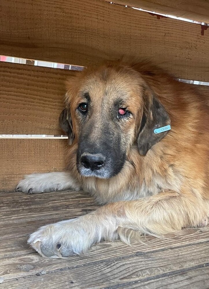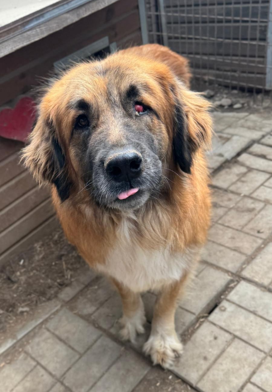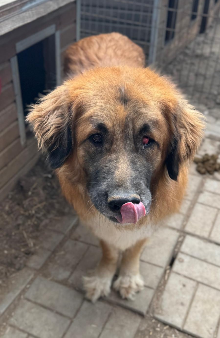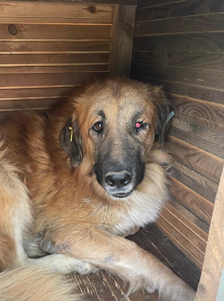 BOSHOS linkes Auge sieht schlimm aus. Er wirkt müde und hat geschlafen, als wir seinen Kennel betreten haben. Über unsere Leckerlies hat BOSHO sich sehr gefreut und wir konnten ihn auch streicheln.