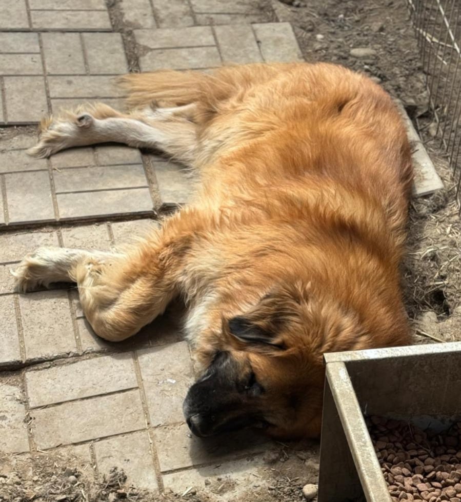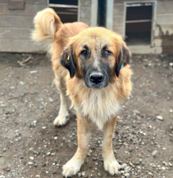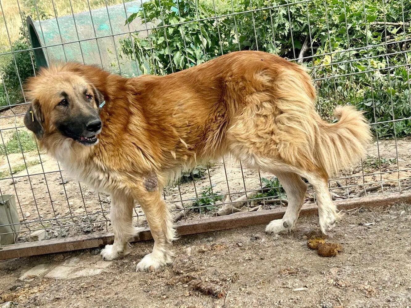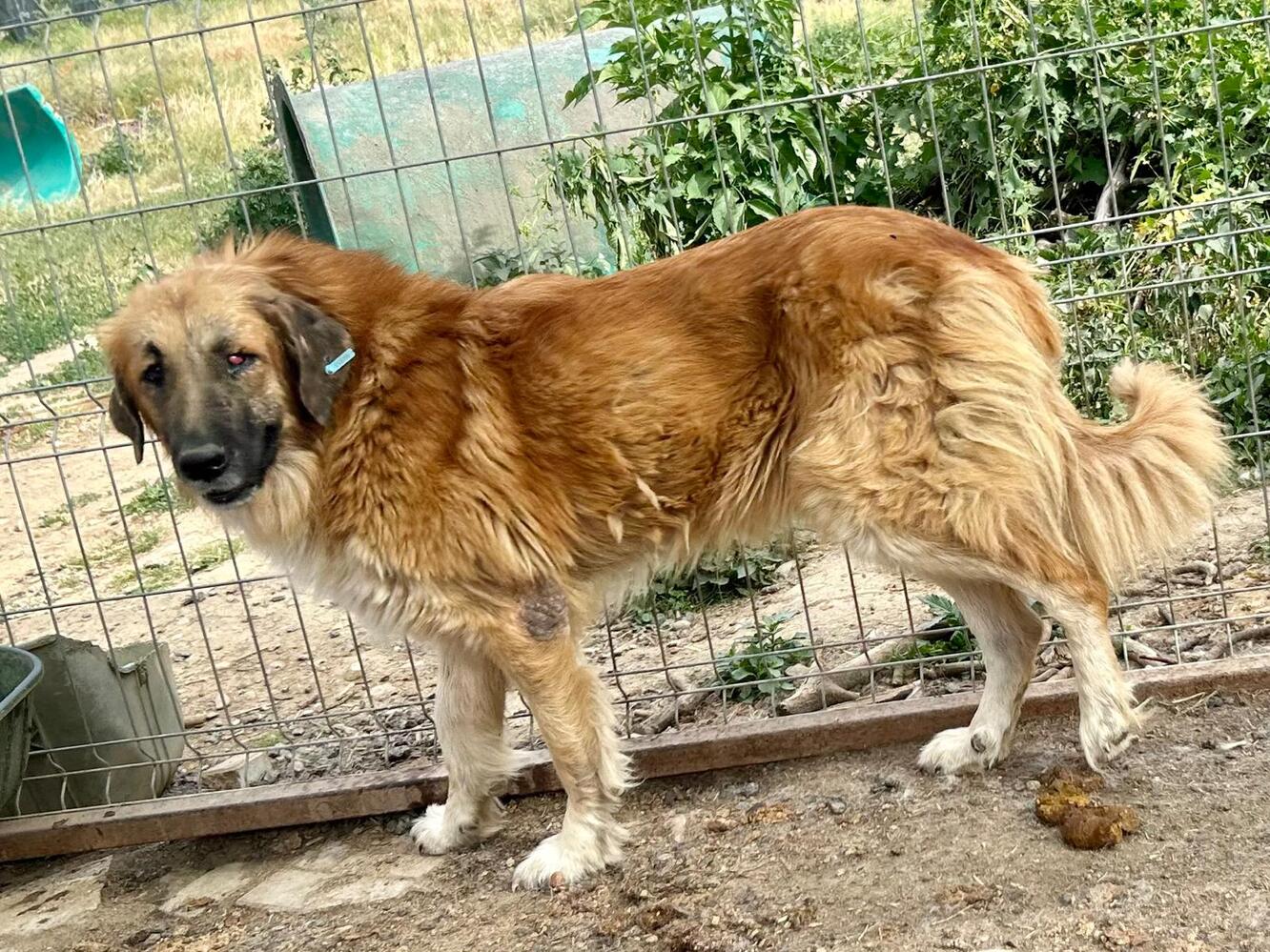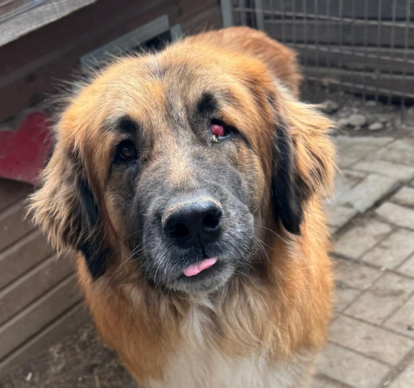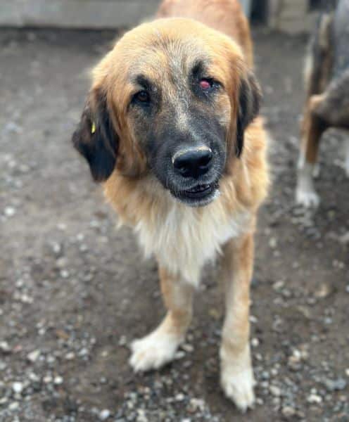 BOSHOS linkes Auge sieht schlimm aus. Er wirkt müde und hat geschlafen, als wir seinen Kennel betreten haben. Über unsere Leckerlies hat BOSHO sich sehr gefreut und wir konnten ihn auch streicheln.