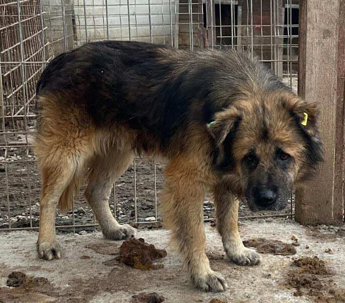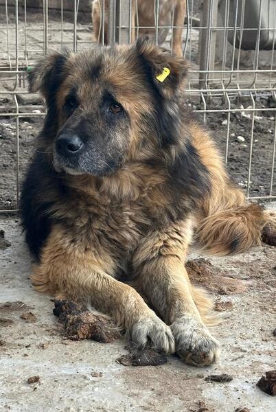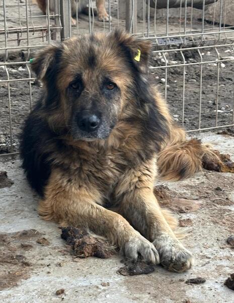 BOSSE ist noch neu in Bucov und blieb ganz ruhig in seinem Kennel liegen, als wir den Bereich betraten. Er beobachtete aufmerksam, was wir taten. Vom Boden aus nahm er Leckerlies, doch für mehr fehlte dem sanften Rüden leider noch der Mut. Immer wieder schnüffelte er in unsere Richtung, als wir ihm ein Leckerli aus der Hand anboten. Trotz seines Interesses konnte er seine Unsicherheit nicht überwinden und nahm das Leckerli nicht aus der Hand.