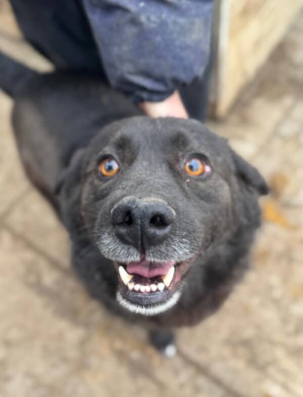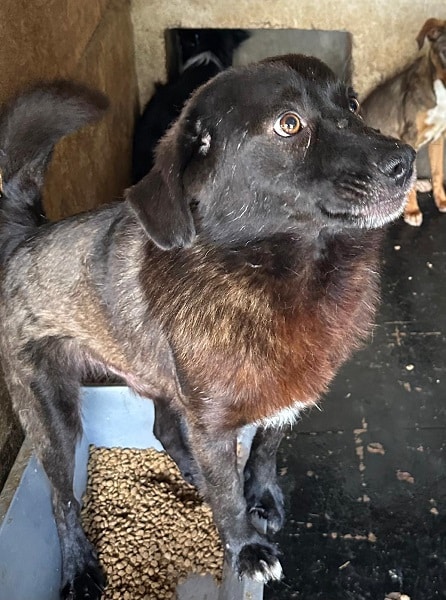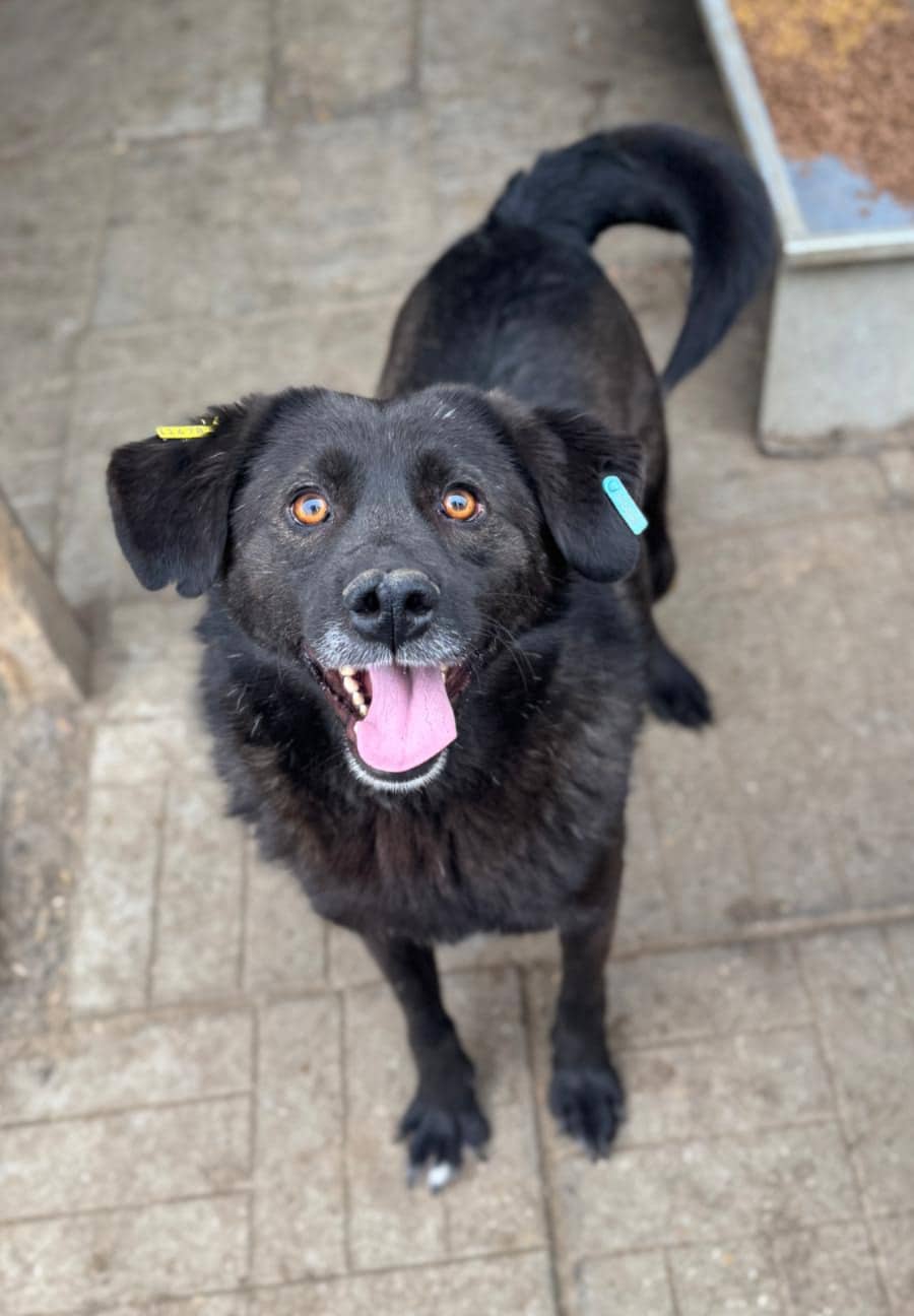 BOUNCE empfing uns sofort wie früher. Inzwischen lebt er in einem Außenkennel anstelle des Vet-Kennels. Der Rüde ist so menschenbezogen, dass er offensichtlich eng mit Menschen zusammengelebt hat. Er ist jedoch nicht aufdringlich; seine Freude ist riesig, wenn jemand Zeit für ihn hat. Deshalb wäre es großartig, wenn dieser wunderbare Rüde die Aufmerksamkeit bekommt, die er verdient und somit ein eigenes Zuhause erfährt. Er ist ein äußerst verträglicher Familienhund, absolut liebevoll und einfach ein Traumhund. BOUNCE ist sehr anschmiegsam und immer freundlich. Auch wenn seine Fellfarbe es ihm schwer macht, sollte sein Charakter und sein Aussehen alle überzeugen. Möglicherweise steckt in ihm etwas Labrador.
