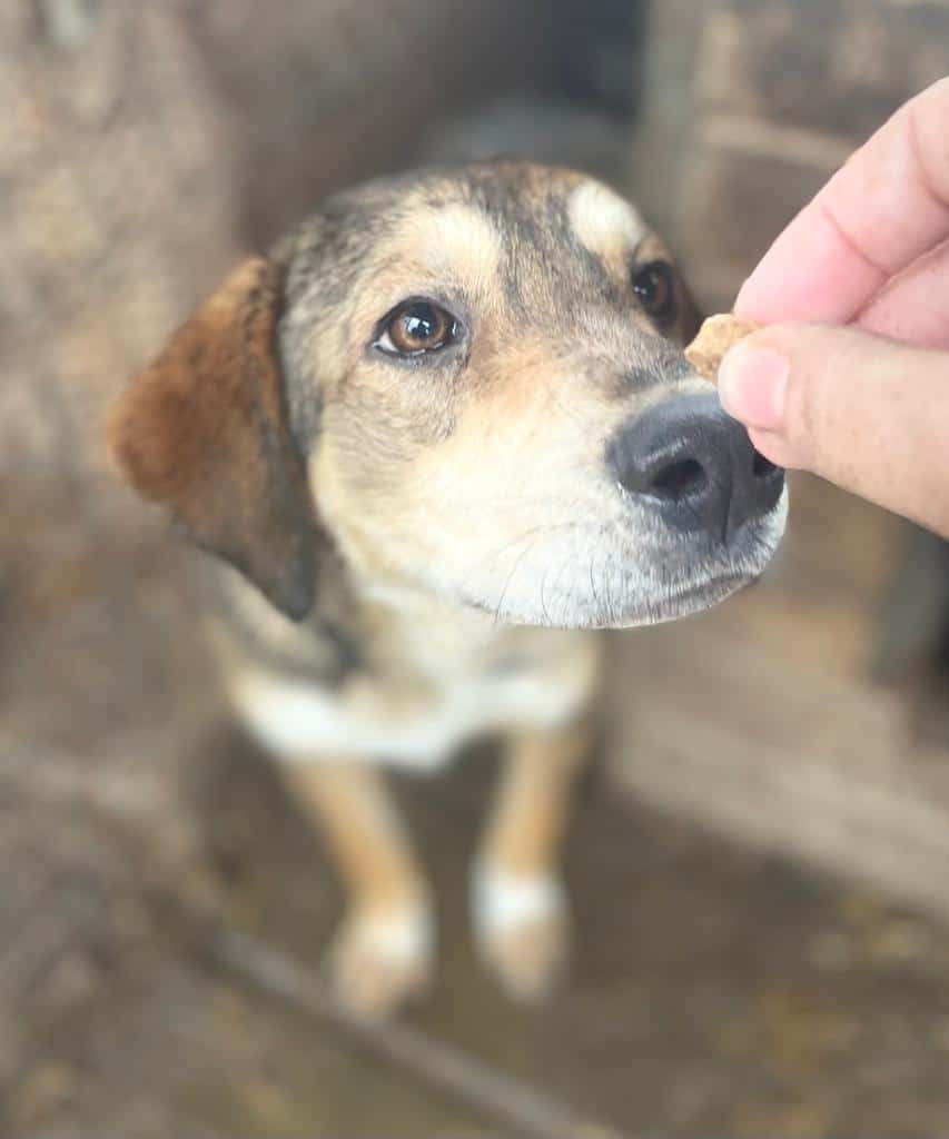 Die bildhübsche BOUNTY zeigte sich bei unserem Besuch wieder neugierig und freundlich. Sie nahm gerne unsere Leckerlies aus der Hand und wir konnten sie auch vorsichtig anfassen. Wie immer ist noch etwas unsicher, würde mit etwas Eingewöhnungszeit und einem netten Hundekumpel in einem eigenen Zuhause aber sicherlich gut auftauen. Da sie seit Welpe an ohne intensiven Menschenkontakt im Shelter sitzt, ist es nicht verwunderlich, dass sie lieber vorsichtig ist.