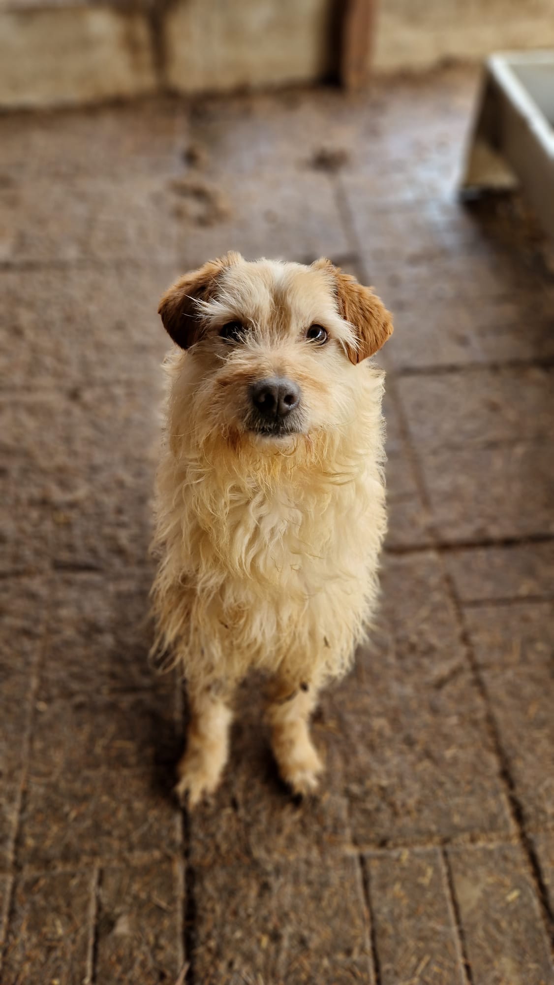 freut sich über Besuch, ist aber unsicher und mit der Situation im Kennel überfordert