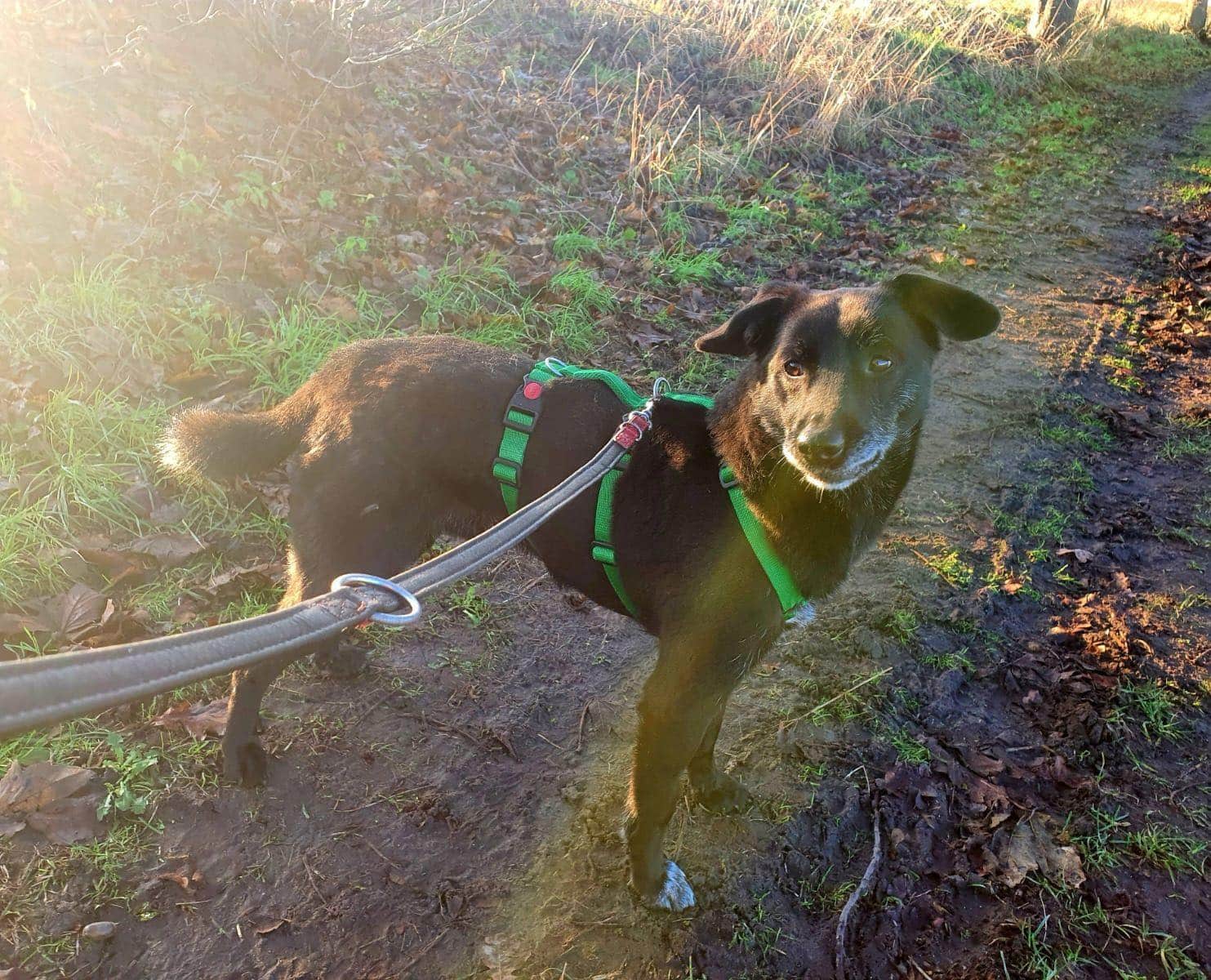 Bran ist ein sportliches Kerlchen und liebt es in der Natur unterwegs zu sein. Dort saugt er mit allen Sinnen die Umgebung auf und genießt sichtlich sein neues Leben.