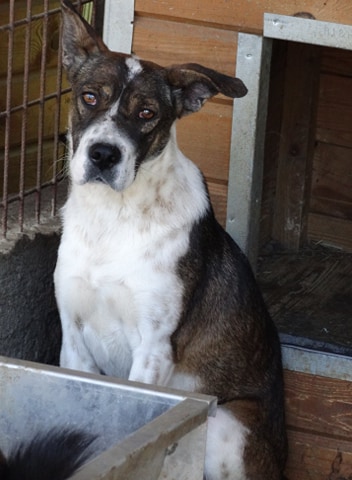 BRANCA ist bei unserem Besuch die mutigste aus ihrem Kennel gewesen und kam immer wieder neugierig zu uns und hat sich ihre Leckerchen abgeholt. Streicheln konnten wir sie allerdings noch nicht. Leider humpelt sie aktuell auf Grund einer Bisswunde hinten rechts.