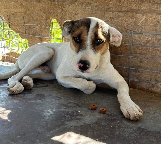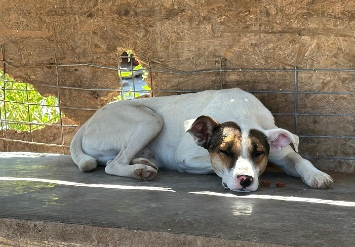 Update 09/24: Brodie lag während unseres Besuchs die ganze Zeit gechillt auf dem Hüttendach und döste vor sich hin. Unsere Leckerlies nahm er und wir konnten ihn auch streicheln, aber für ihn war es leider nichts Besonderes mehr. Er wirkt recht resigniert mit seinem jungen Alter. Brodie wird in einer Familie sicher recht schnell wieder zu einer junghundtypischen Form zurückfinden und so hoffen wir, dass der hübsche Bub nicht so lange darauf warten muss.