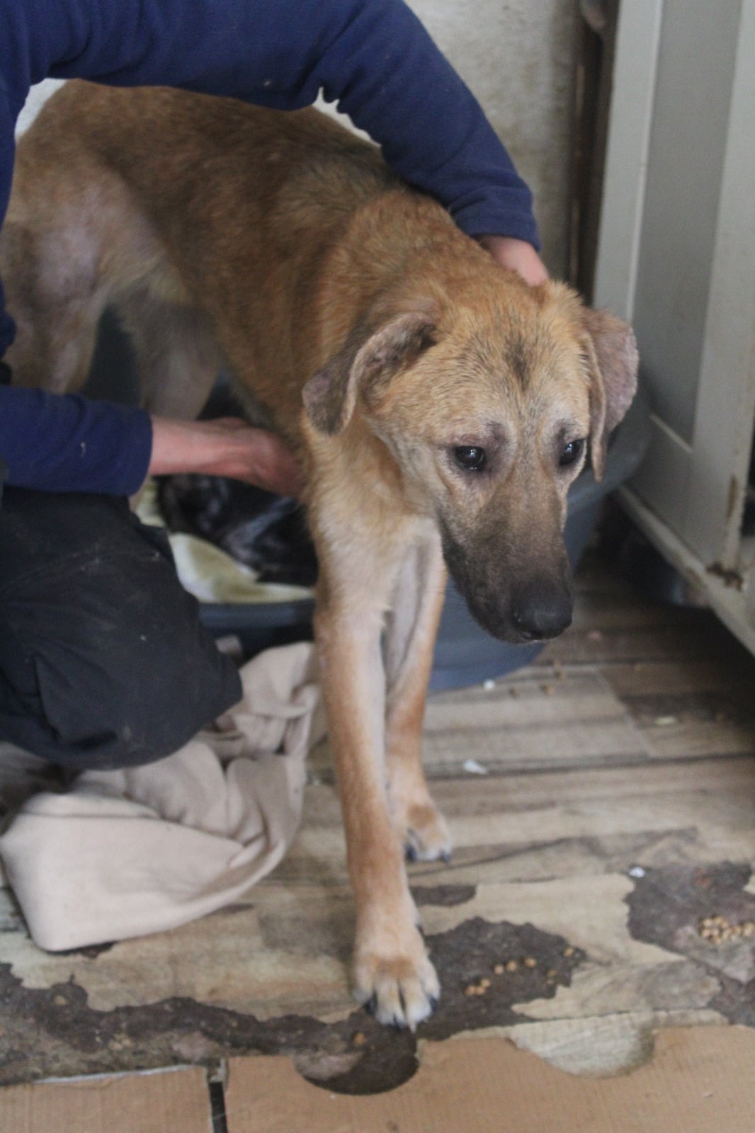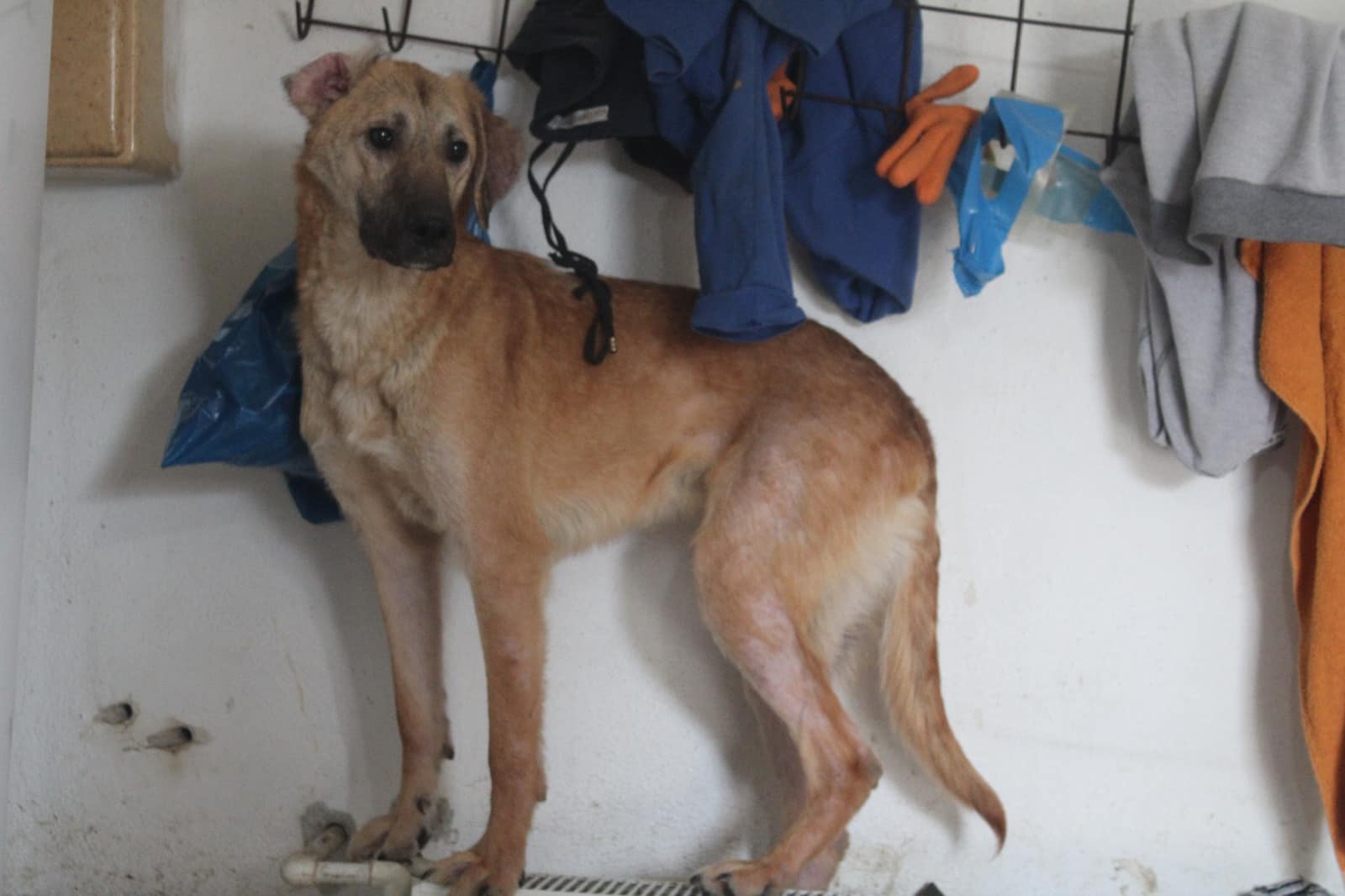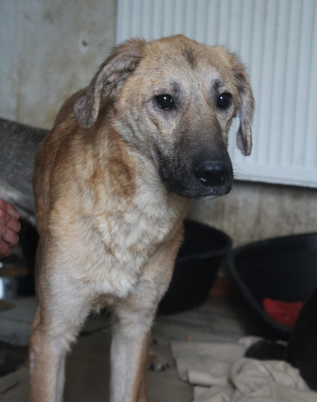 Brody zeigt sich nach wie vor vom Shelterleben beeindruckt, die Hautprobleme scheinen abgeklungen zu sein, er ist aber aktuell zu dünn.