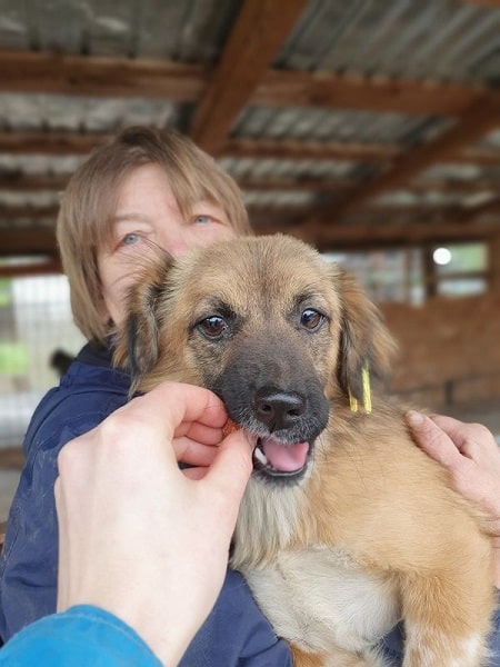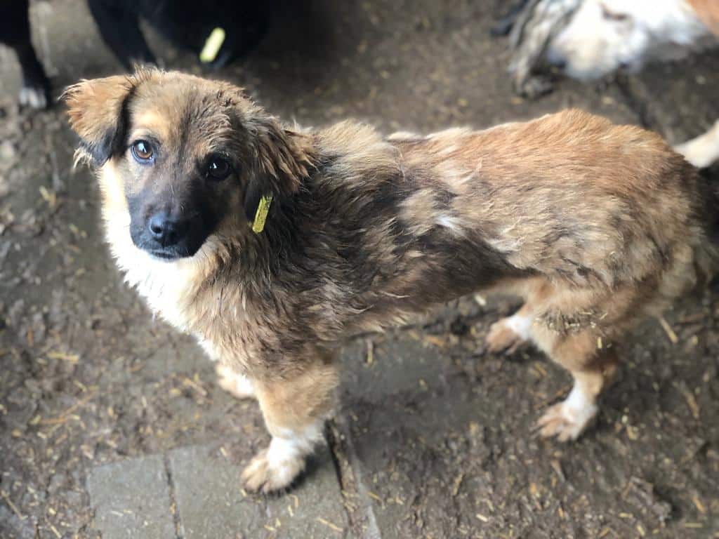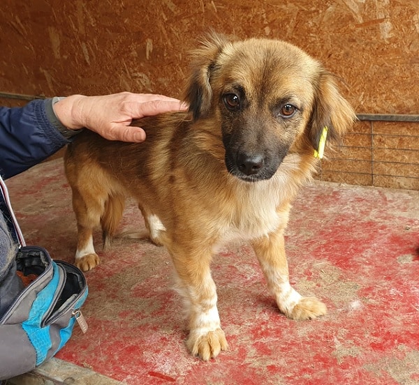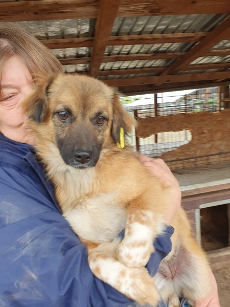BROOK ist aufgetaut. Obwohl sie die Kleinste im Kennel und damit sehr viel Stress ausgesetzt ist, ist sie eine nette Hündin, die sich gut auf den Arm nehmen und überall anfassen ließ.