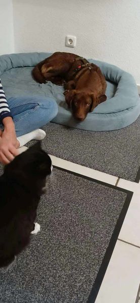 Am 09.11.2024 bezog Browny sein vorübergehendes Zuhause in Ostfriesland. Er war völlig abgemagert, weil ihn andere Hunde im Shelter vom Futter verdrängt hatten. Der kleine Kerl hatte anfangs panische Angst vor uns Menschen, aber nach nur drei Tagen blühte Browny auf und lebt seither mit unseren Hunden (eine Hündin und ein Rüde) sowie zwei Katzen harmonisch zusammen.