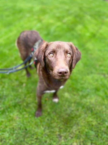 Im Garten läuft er mittlerweile sehr entspannt an der Leine, jedoch ist er abseits des Grundstücks noch ängstlich, lässt sich aber ziemlich gut durch Leckerlies ablenken. Bislang fällt uns kein Jagdtrieb auf. Alleinsein ohne Menschen muss noch trainiert werden. In Hundegesellschaft ist es gar kein Problem. Browny hatte ein paar Reisekrankheiten im Gepäck, weshalb er zurzeit noch antibiotisch behandelt wird.