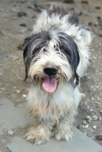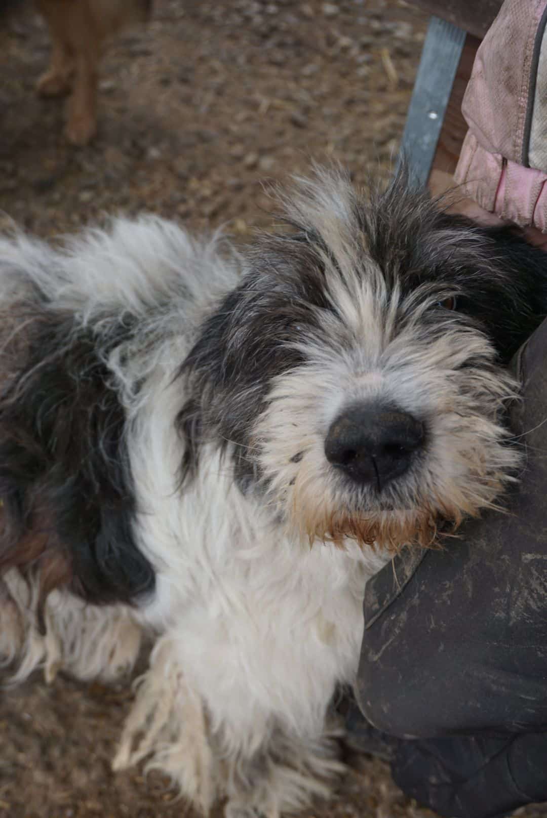 BRUNO’s Fell ist stark verfilzt. Er ließ sich ohne Probleme das Gesicht freischneiden und ist ein seht positiv gestimmter Hund.