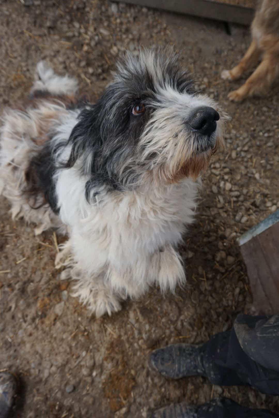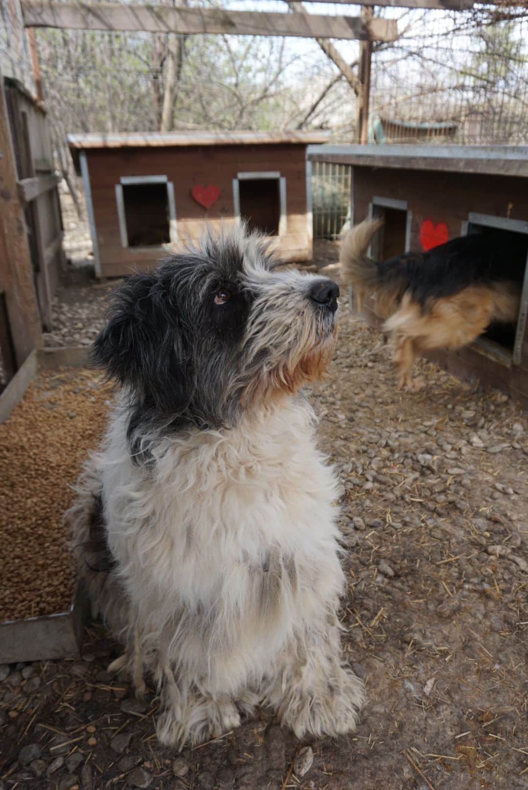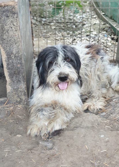 BRUNO sitzt mit 3 weiteren Mioritic im Kennel und gibt dort den Ton an. Er lässt sich problemlos streicheln, aber andere Hunde braucht er nicht wirklich, um glücklich zu sein.