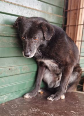 BUFFY – bereits als Welpe im Shelter gelandet, um dort seine gesamte Lebenszeit zu verbringen, ohne Menschen, die ihn lieben, ohne jemals Gras unter den Pfoten gespürt zu haben…? Ein trauriges Schicksal für den nun bereits 6 Jahre alten hübschen Hundemann. BUFFY saß wie gewohnt in einer Ecke auf der Hütte. Dies scheint seit Langem sein Lieblingsplatz zu sein. Als wir uns ihm langsam mit Leckerlie in der Hand näherten, nahm er Reißaus, lief in eine Kennel-Ecke zu anderen Hunden und suchte dort Schutz. Dort naschte er dann vorsichtig die Leckerlis vom Boden, immer wachsam, ob wir uns näherten. Wir bedrängten ihn nicht weiter. BUFFY lebt in einem gemischten Rudel aus mehreren unsicheren Rüden und Hündinnen und lebt dort sehr friedlich mit allen zusammen. Wer dem niedlichen BUFFY eine Chance geben möchte, sollte viel Erfahrung mit unsicheren Hunden haben. BUFFY braucht viel Zeit, Geduld und Raum zum Ankommen, Auftauen und um Vertrauen zu lernen. Ein aufgeschlossener und netter Ersthund, bei dem er sich Souveränität abschauen könnte, wäre ihm bei der Umstellung sicher eine große Stütze. Wir geben die Hoffnung nicht auf, dass BUFFY in kleinen Schritten doch noch auf die Sonnenseite des Lebens wechseln und endlich ein weiches Körbchen und Gras unter den Pfoten spüren darf…