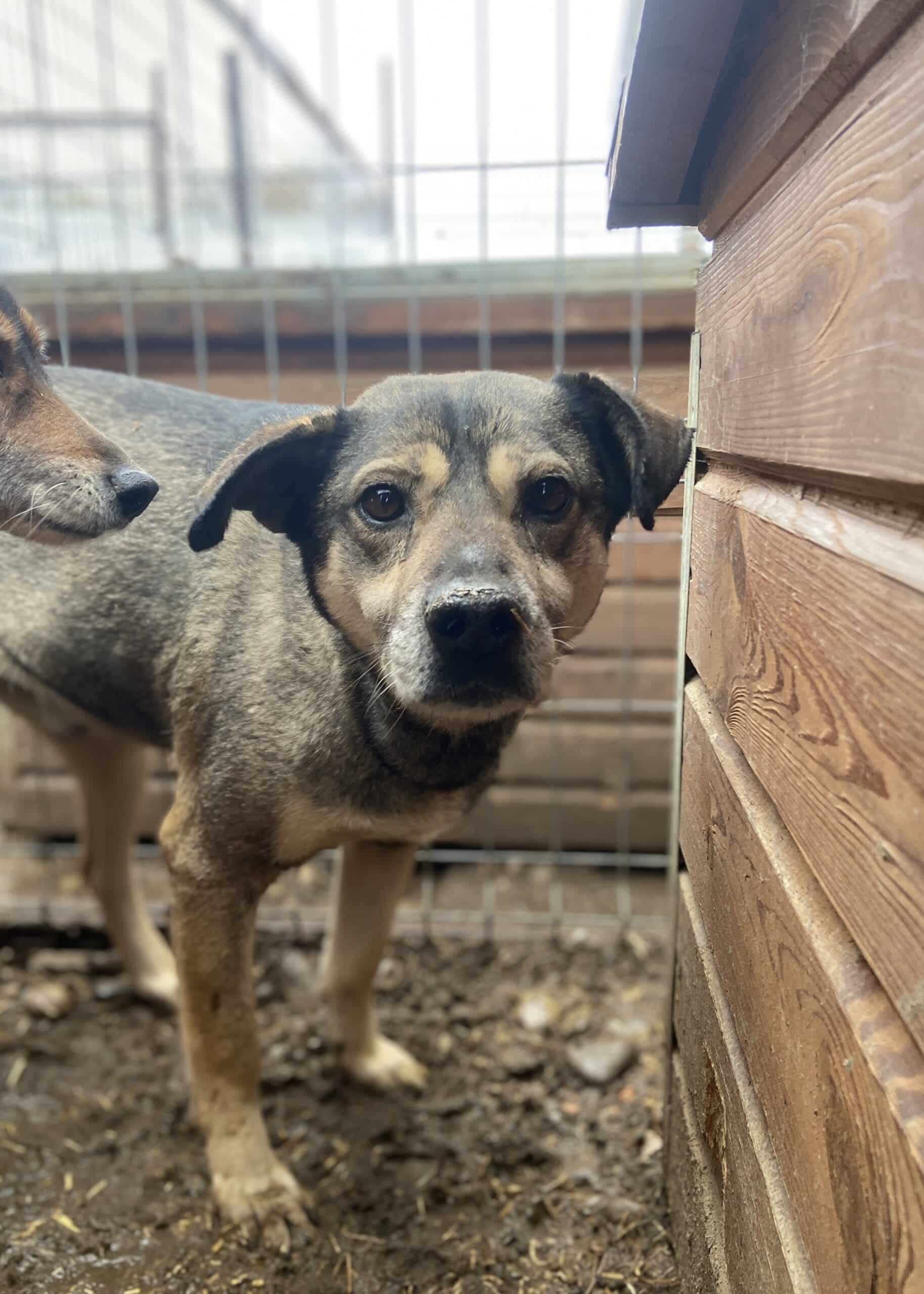 BULLY gehört mittlerweile zu den Senioren, ein netter und ganz süsser Opi. Er begrüßte uns schon freudig an der Kenneltür und war die ganze Zeit mit dabei, hielt aber immer etwas Abstand. BULLY ist noch etwas zurückhaltend und nahm unsere Leckerlies lieber vom Boden. Viel zu lange wartet er schon in einem winzigen Zwinger in Bucov und hätte wirklich eine Chance auf einen schönen Lebensabend verdient.
