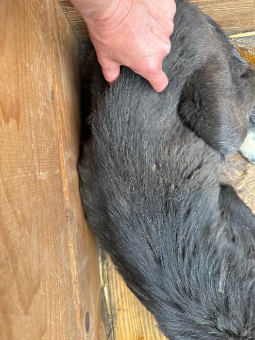 Opi BUMMI geht es gar nicht gut. Er ist zum Mobbing Opfer geworden! Bei unserem Besuch lag er in der Hütte und schaute ab und zu mal raus. Wir haben dann die Hütte geöffnet und einen völlig entkräfteten dürren Bummi gesehen. Er schaute immer wieder zum Futter raus, aber hat sich nicht getraut wegen den anderen Hunden die Hütte zu verlassen. Wir haben ihm dann Futter in die Hütte geschafft, was er halb verschlungen hat. Die Tierärztin ist informiert und er wurde im Vethouse untergebracht, was aber keine Dauerlösung ist. Wir hoffen, er findet schnell einen ruhigen Platz, wo er wieder aufgepäppelt wird und noch viele Jahre glücklich sein darf.