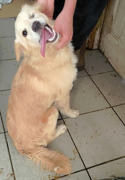 Wenn sich ein Hundemädchen so richtig freuen kann, dann sie. Die süße Hündin war richtig begeistert von unserem Besuch und wusste gar nicht, wem sie sich zuwenden sollte und von wem sie Streicheleinheiten einfordern sollte. Die kurze Zeit der Aufmerksamkeit und auf dem Arm genoss sie sehr.