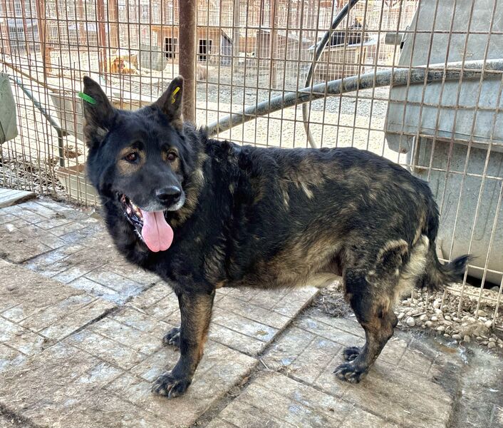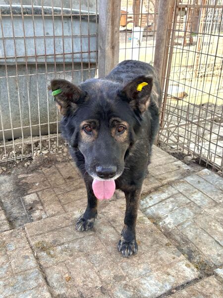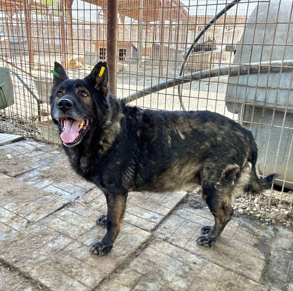 Dieser zuckersüße Rüde bringt aktuell leider ein paar Kilo zu viel auf die Waage. Trotz seiner leichten Unsicherheit im direkten Menschenkontakt war BURRITO bei unserem Besuch von der ersten Sekunde an sehr interessiert, schleckte zur Begrüßung unsere Hände ab und blieb stets in unserer Nähe. In seinem gemischten Rudel zeigte er sich durchgehend verträglich und ausgeglichen. Er schnupperte vorsichtig an unseren Händen und ließ sich schließlich auch kurz und behutsam an Schnute u d Hals streicheln – ganz geheuer ist ihm der menschliche Kontakt aber noch nicht, vermutlich hat er ihn nie kennengelernt. Dennoch wirkte BURRITO neugierig und bemüht, die Situation einzuschätzen. Ein kleines Stück seiner linken Ohrspitze fehlt – was genau passiert ist, wissen wir nicht. Dieser niedliche Rüde bringt beste Voraussetzungen mit, um in einem ruhigen Umfeld mit etwas Geduld und Einfühlungsvermögen Vertrauen zu fassen und anzukommen. Ein souveräner Ersthund könnte ihm dabei eine gute Stütze sein.