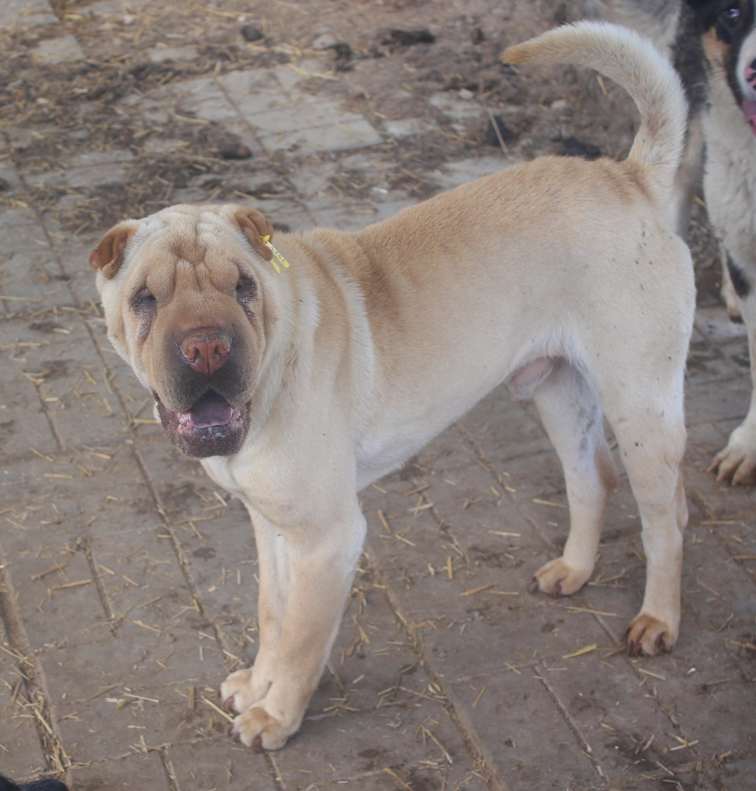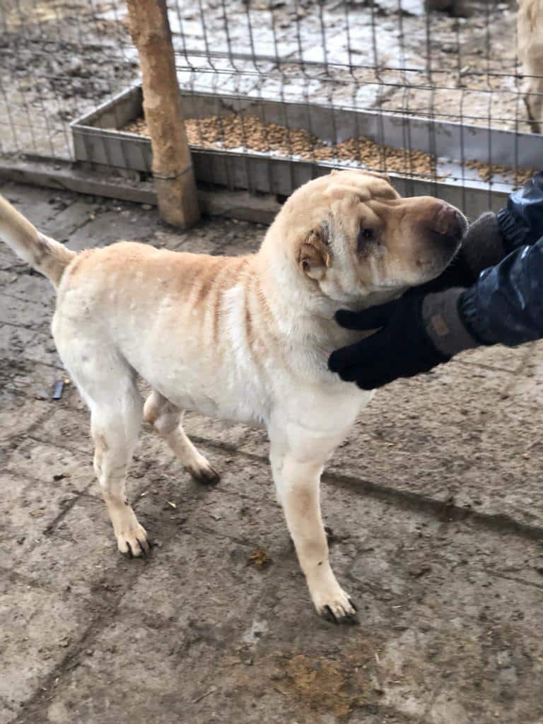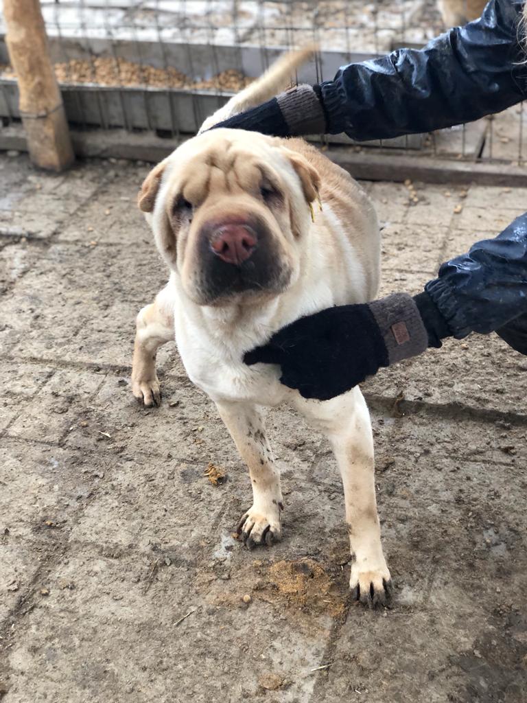 Buster hat sich sehr über unseren Besuch gefreut. Er liebt den Menschen und ist dabei sehr nett im Umgang. Er lebt aktuell mit zwei scheuen Hunden in einem Kennel.