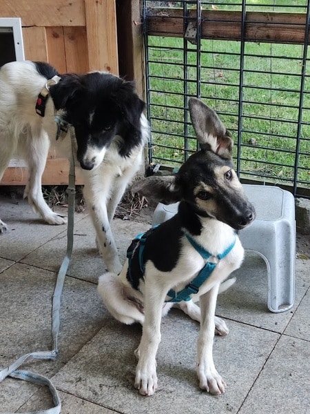 Endlich konnte auch die Schwester von Püppchen nachrücken und zeigt sich hier auf Pflegestelle genauso sanft und liebenswert. Bei Ankunft zunächst noch etwas zögerlich, hat sie rasch verstanden, wie es hier im Rudel läuft. Inzwischen ist sie dem Pflegefrauchen herzlich zugetan, mit ihren Pflegeschwestern ausnahmslos gut Freund. Ihre Reisegefährtin Katie hat sie sich ein bisschen als Ersatzmama ausgesucht; ein Phänomen, was ich hier häufiger beobachten darf. Die gemeinsame Ankunft, das gemeinsame Einfinden in eine neue Umgebung, neue Eindrücke, neue Regeln, schweißt zusammen, gibt der jüngeren oft den benötigten Halt.