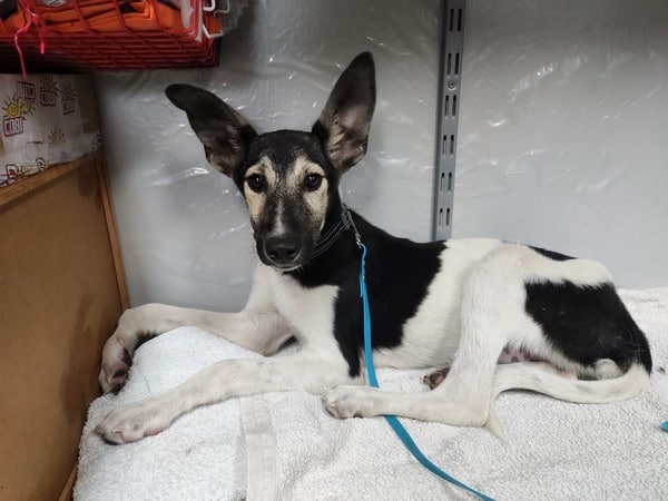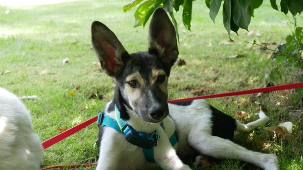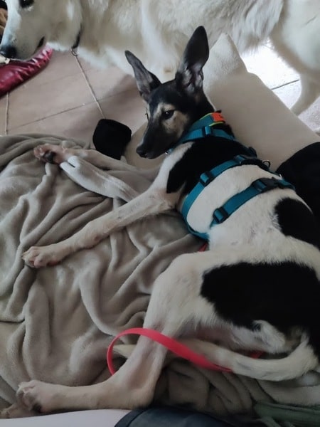 Ihr schlanker Körper mit den langen Beinen und überaus entzückenden Riesenohren lassen vermuten, dass ein wenig Galgo / Windhund in ihr steckt. Das würde bedeuten, dass Caara noch einen ordentlichen Schub an Größe machen kann. Genau wissen wir es natürlich nicht, sollte aber mit eingeplant werden. Umso mehr Kuschelfläche hat man später – denn das ist Pflicht. Sie genießt es, zusammen Zeit zu verbringen und lässt sich genüsslich das seidige Fell, das weiche Bäuchlein kraulen. Bett, Sofa und Katzenfutter sind hier tabu – klappt (meistens) auch schon ganz gut.