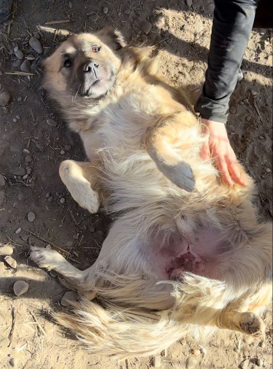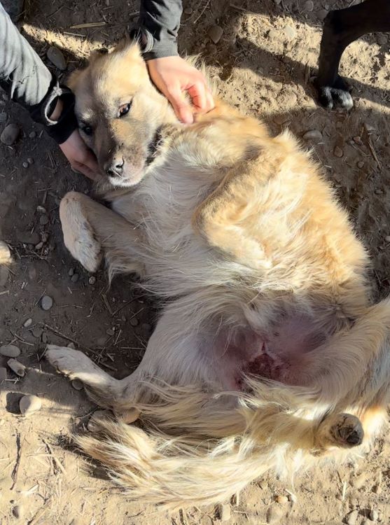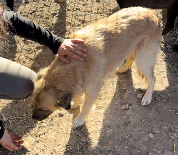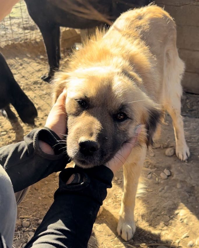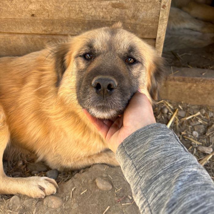 Ganz brav lag CABO vor einer Hütte in einer Sandkuhle und wartete geduldig ab, bis wir uns ihm zuwandten. Er genoss die sanften Streicheleinheiten und zeigte uns sogar sein Bäuchlein, um sich dies kraulen zu lassen. CABO war dabei die ganze Zeit höflich und unaufdringlich. Als wir uns mit dem nächsten Hund beschäftigten, legte er sich wieder auf seinen Platz.