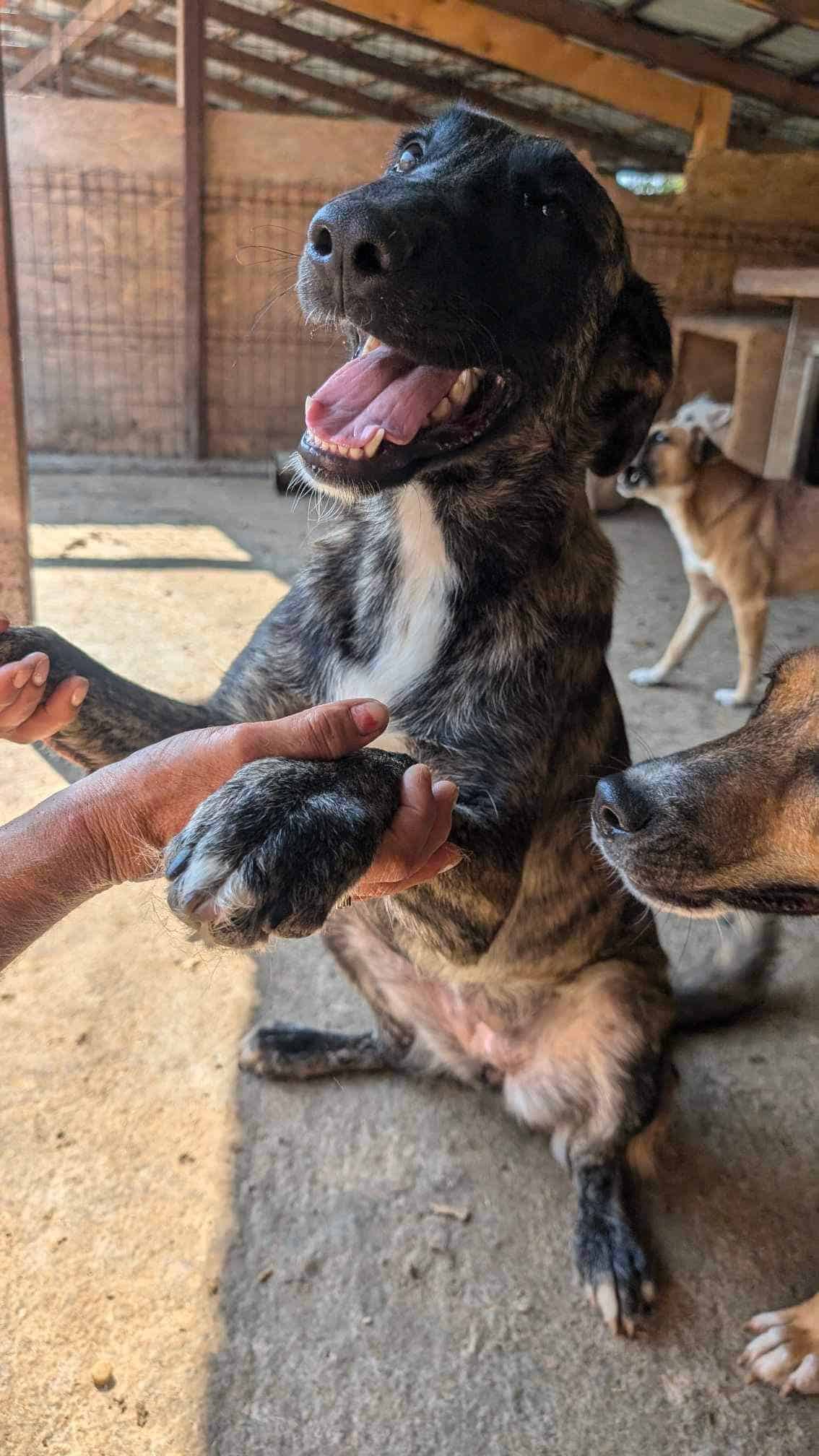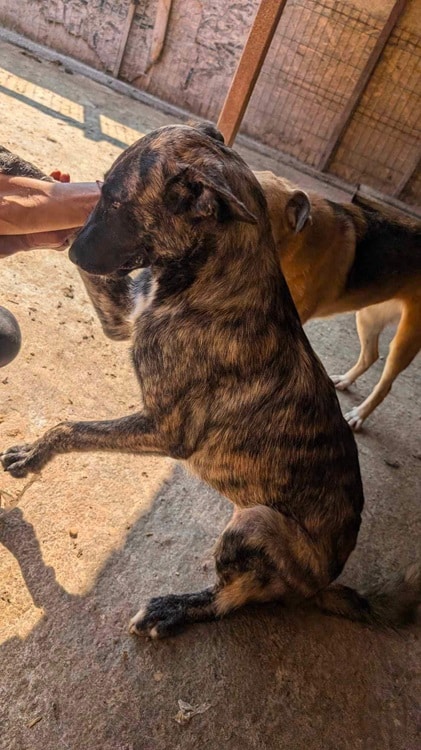 Die junge CAELINN kam mit ihrer Hundemama Vandana in das Shelter Baile. Beide sind absolute Schätze. CAELINN ist eine neugierige, alterstypisch verspielte Hündin. Die gestromte Beauty begegnet allen und jeden freundlich und aufgeschlossen. CAELINN ist überall gerne anfassbar und freut sich über jede Streicheleinheit.