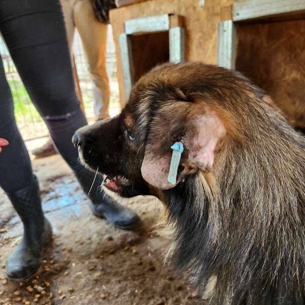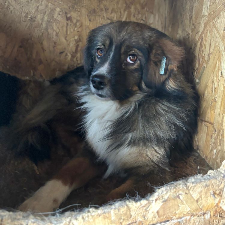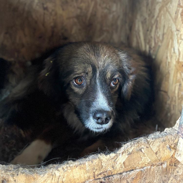 CAI war zunächst nicht sonderlich begeistert von unserem Besuch und hielt sich deshalb vorwiegend in der Hütte auf. Vor unserer Kontaktaufnahme wich er zurück und suchte auch nicht von allein unsere Nähe. Ausserhalb der Hütte packte ihn dann doch eine Spur Neugier und CAI schaute uns interessiert bei der Arbeit zu und stand einen Moment entspannt im Kennel. Menschliche Nähe scheint ihm einfach neu und ungewohnt zu sein, weshalb wir dringend einen liebevollen Platz bei erfahrenen Menschen suchen, die diesem Schatz die Chance geben, sich an ein Leben auf der Sonnenseite gewöhnen zu können. Da CAI sich im Kennel verträglich zeigte, würde ihm ein aufgeschlossener und netter Ersthund sicher eine große Stütze bei der Umstellung sein.