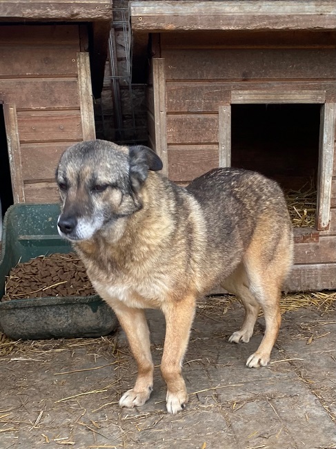 Die schüchterne CAISEY zeigte sich bei unserem Besuch weiterhin zurückhaltend, aber freundlich und neugierig. Sie nahm Futter aus der Hand, aber für mehr fehlte ihr noch der Mut. Sie orientiert sich stark an ihren Artgenossen und muss unbedingt Zweithund werden.