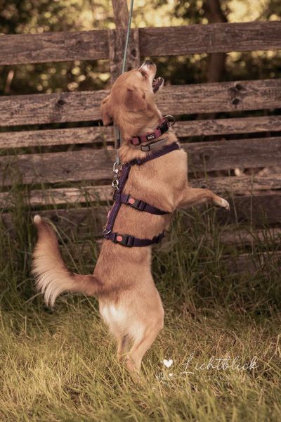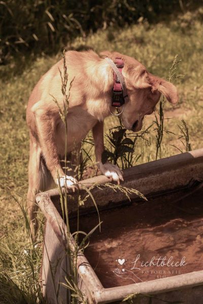 Sie ist eine fröhliche und verspielte Hündin, die mit unseren eigenen Hunden sehr sozial umgeht. In fremden Situationen ist sie noch vorsichtig, aber nicht ängstlich. Hat sie zu einem Menschen Vertrauen aufgebaut, lässt sie sich sehr gut lenken und liebt es, immer in der Nähe zu sein.