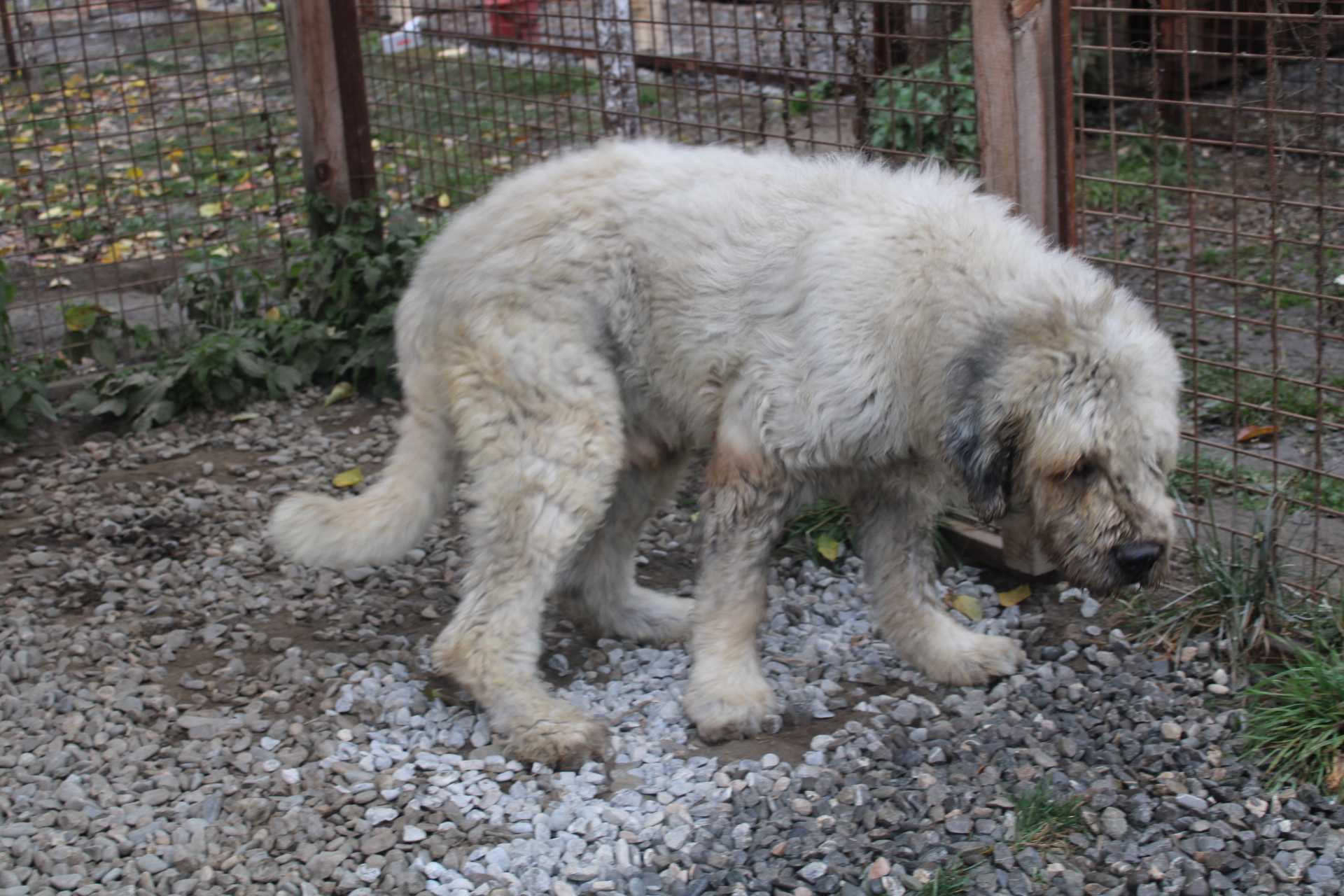 durchtrittig in den Hintergliedmaßen, Hüftprobleme, kaum bemuskelt, läuft sehr unrund