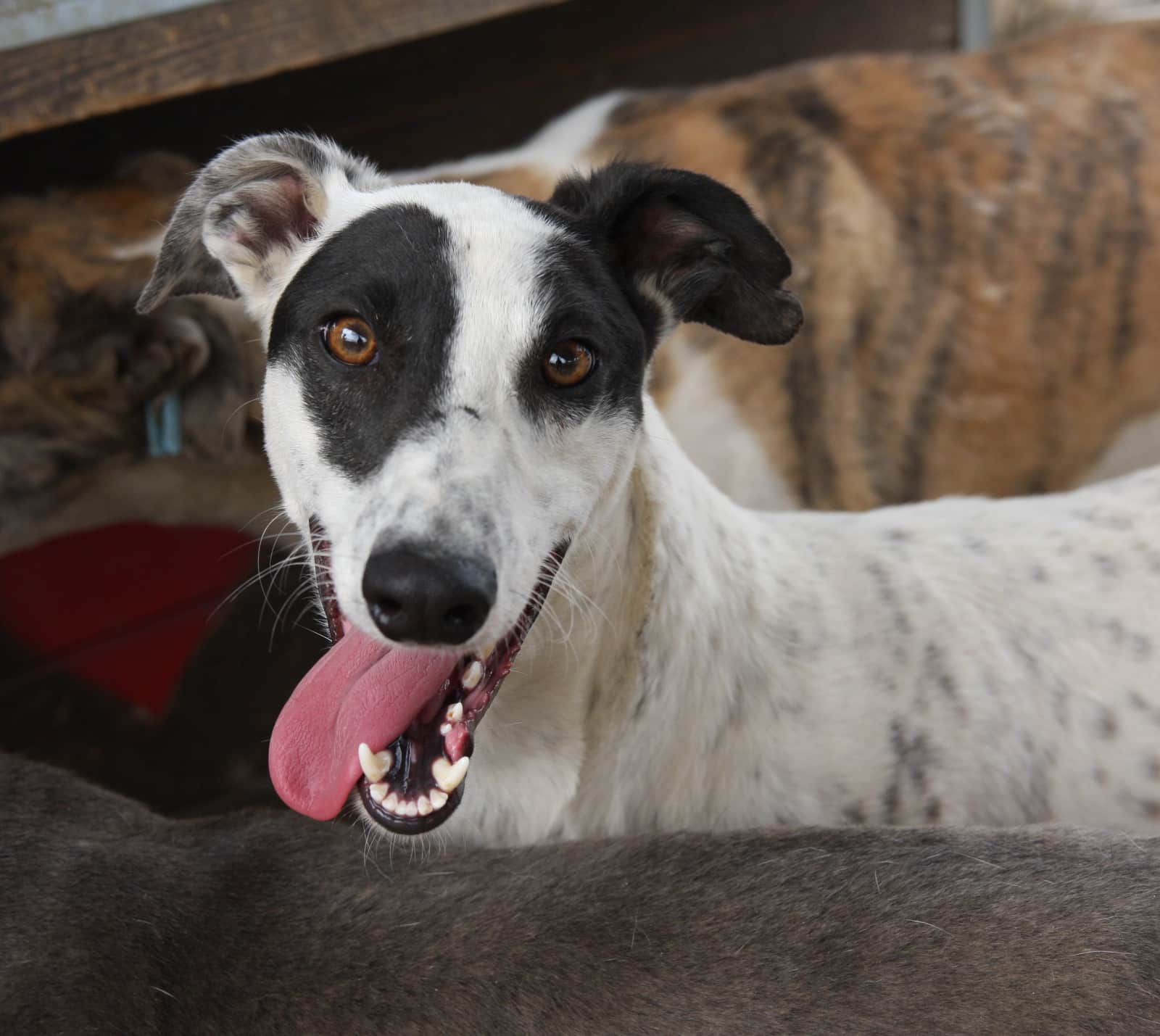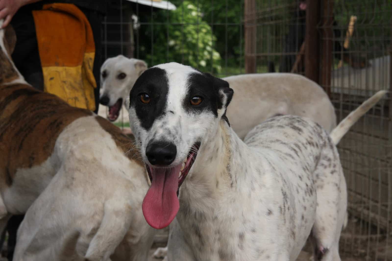 Dieser Rüde stammt mit drei weiteren Windhunden aus einer Beschlagnahmung wegen illegaler Jagd. Die Vier verstehen sich untereinander sehr gut. Er war sehr menschenbezogen, aufgeschlossen und problemlos anfassbar.