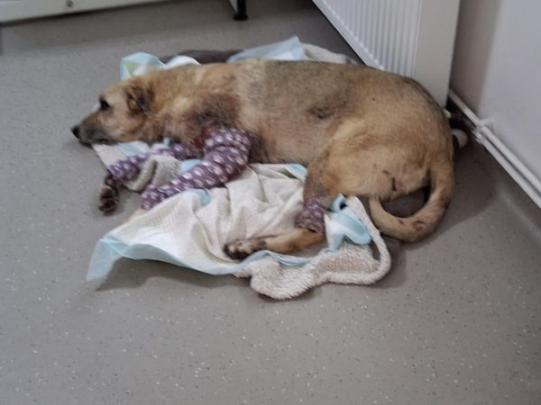 CALON wurde leider schwer gebissen. Er wurde durch den Kennelzaun hindurch attackiert und quasi durchgezogen. Er hat den Vorfall tatsächlich überlebt und ist jetzt zur Behandlung in der Klinik. Wir suchen nun dringend eine Ausreisemöglichkeit, damit er nach dem Klinikaufenthalt nicht wieder zurück ins Shelter muss. Wer hat ein Körbchen frei?