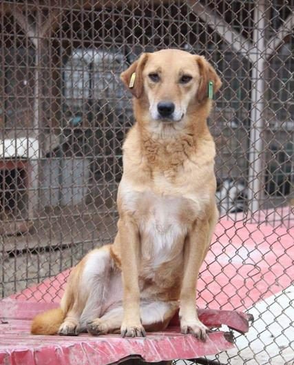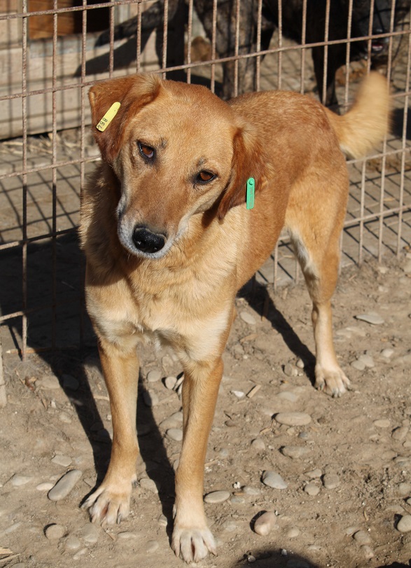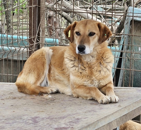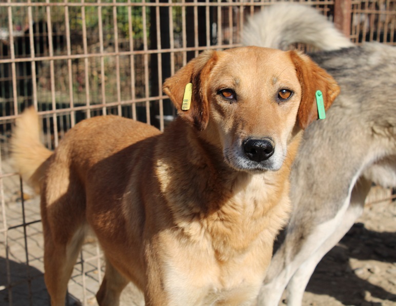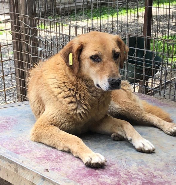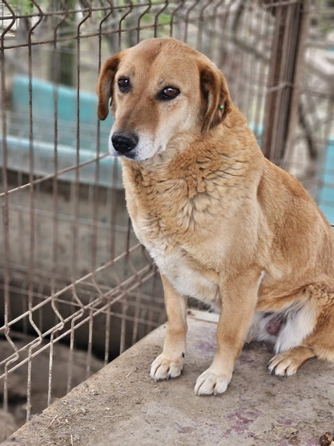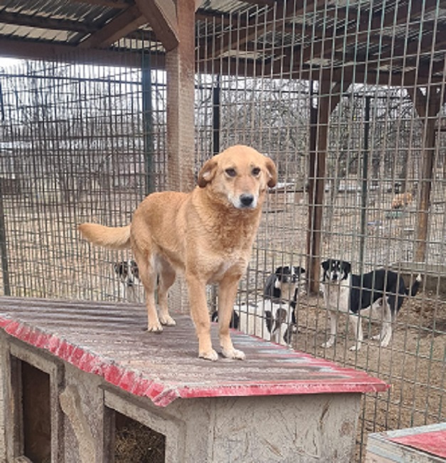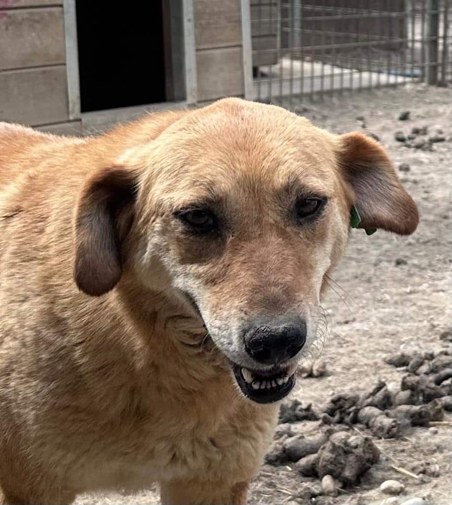 CALYPSO beobachtete uns neugierig vom Hüttendach. Als wir uns ihr zuwandten, nahm sie gerne unsere Leckerchen, wenn wir sie ihr hinlegten. Für mehr fehlte ihr der Mut und sie wich zurück. Wir hoffen sehr, dass sie nach fast 7 Jahren im Shelter nun endlich eine Ausreisemöglichkeit erhält.